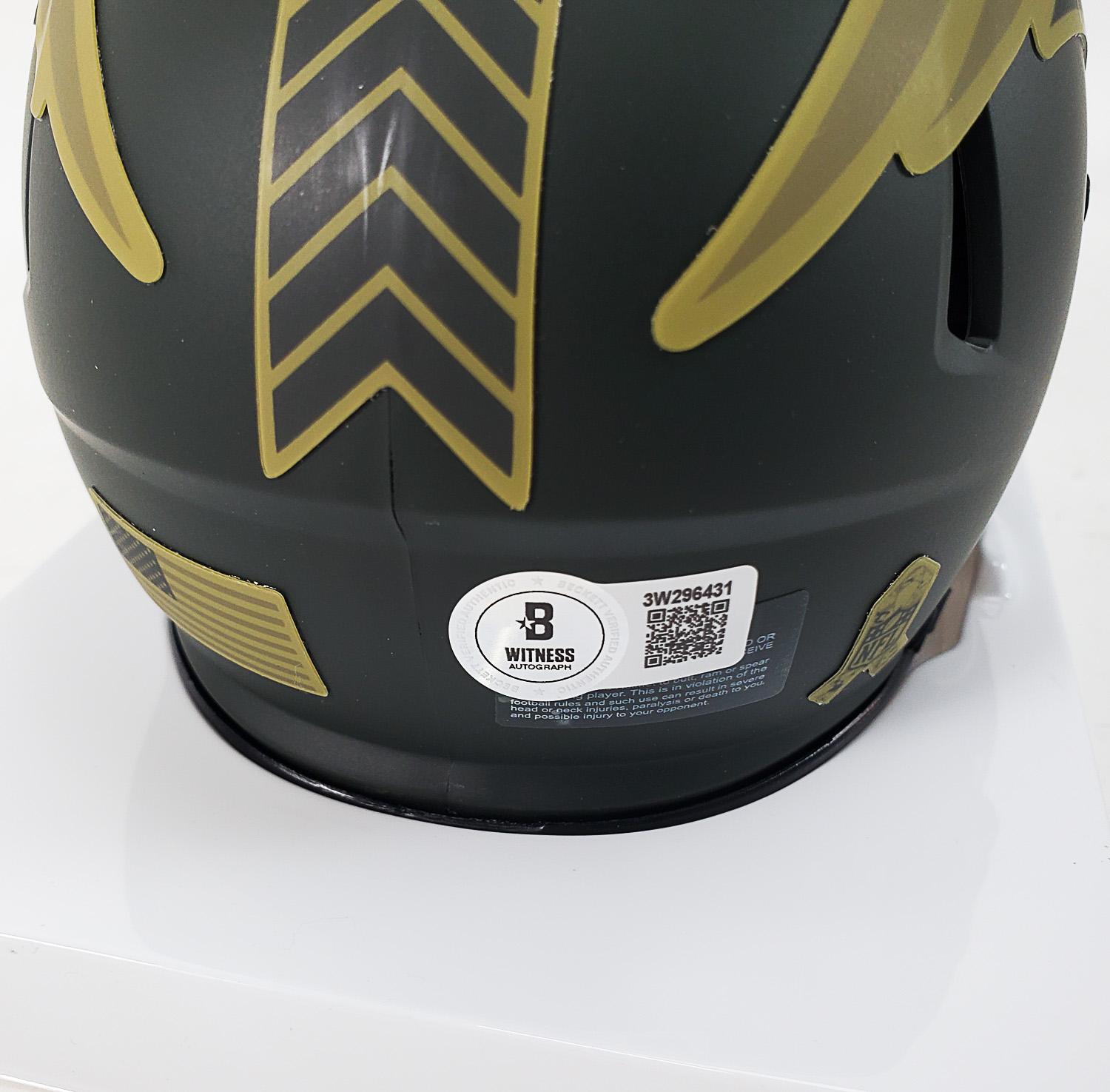 Kayshon Boutte Signed New England Patriots 2025 Salute To Service Speed Mini Helmet (Beckett Witness Certified)