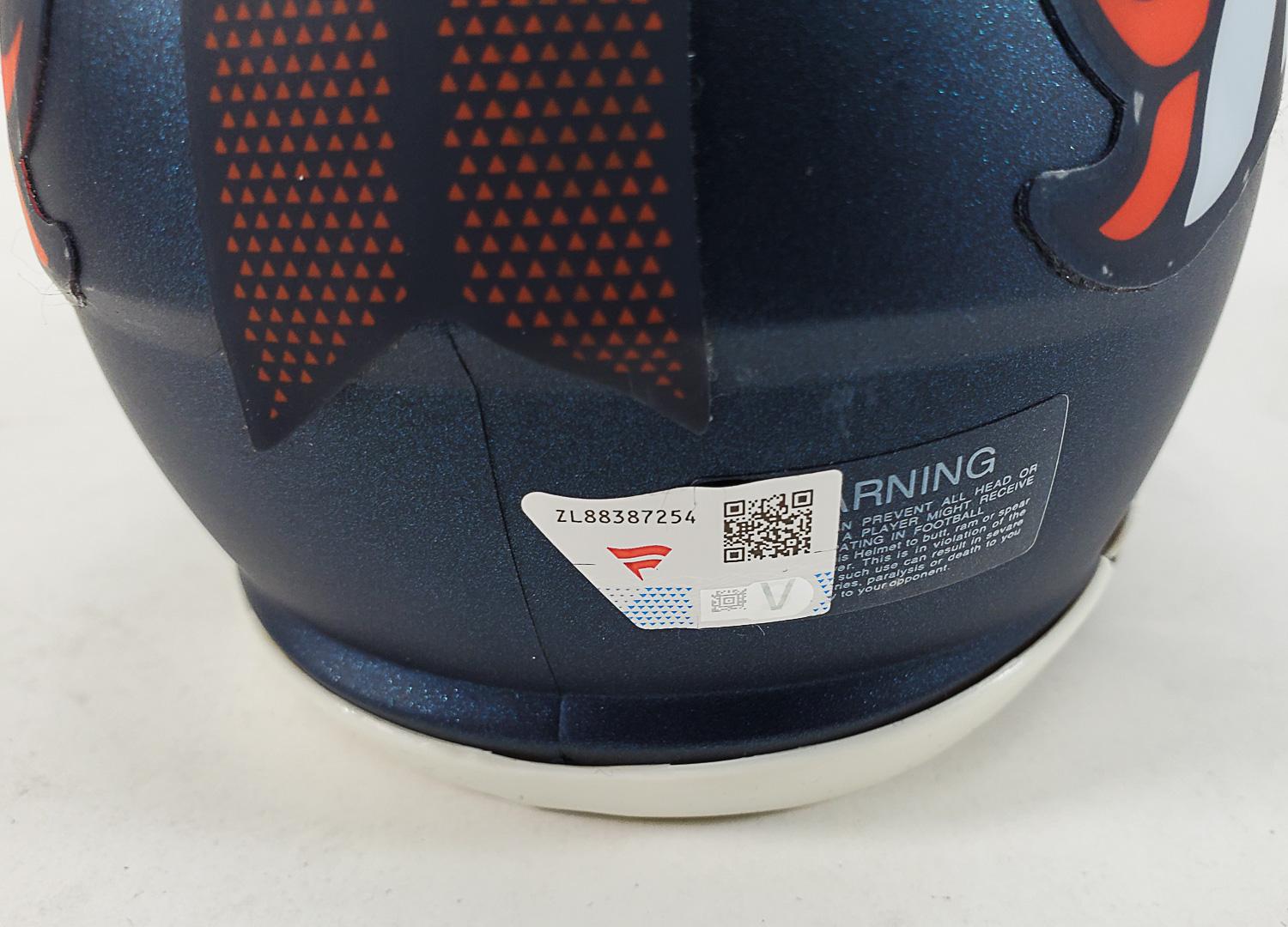 This autographed mini helmet has been personally hand-signed by Bo Nix of the Denver Broncos. This autograph is certified by Fanatics. It comes with the numbered hologram which can be verified on Fanatics.com.