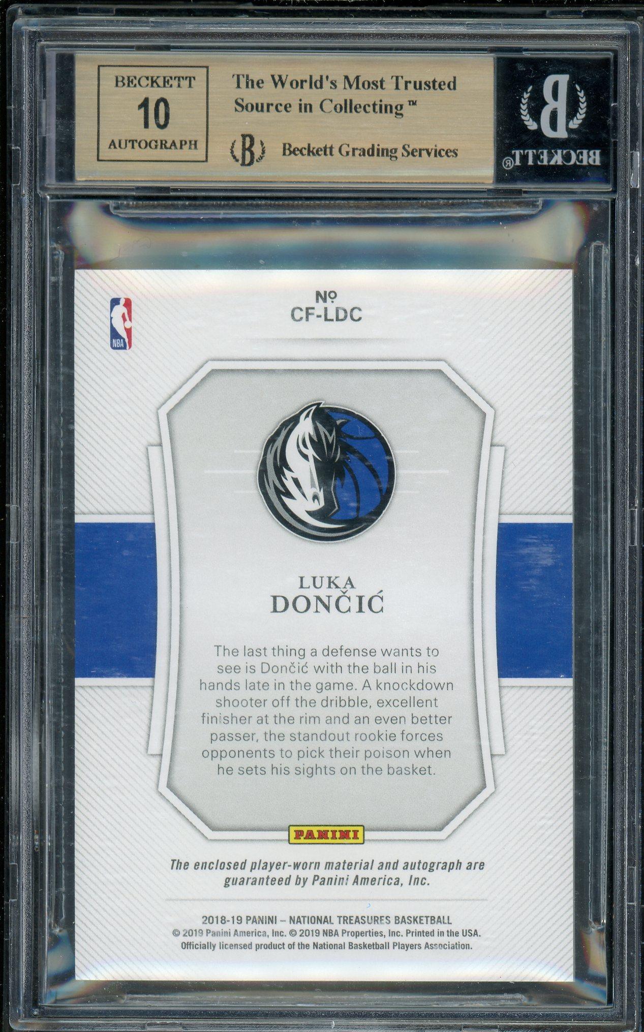Luka Doncic 2018 Panini National Treasures Clutch Factor Jersey Sigs Rookie Patch Auto Card /99 BGS Gem Mint 9.5 Auto 10!