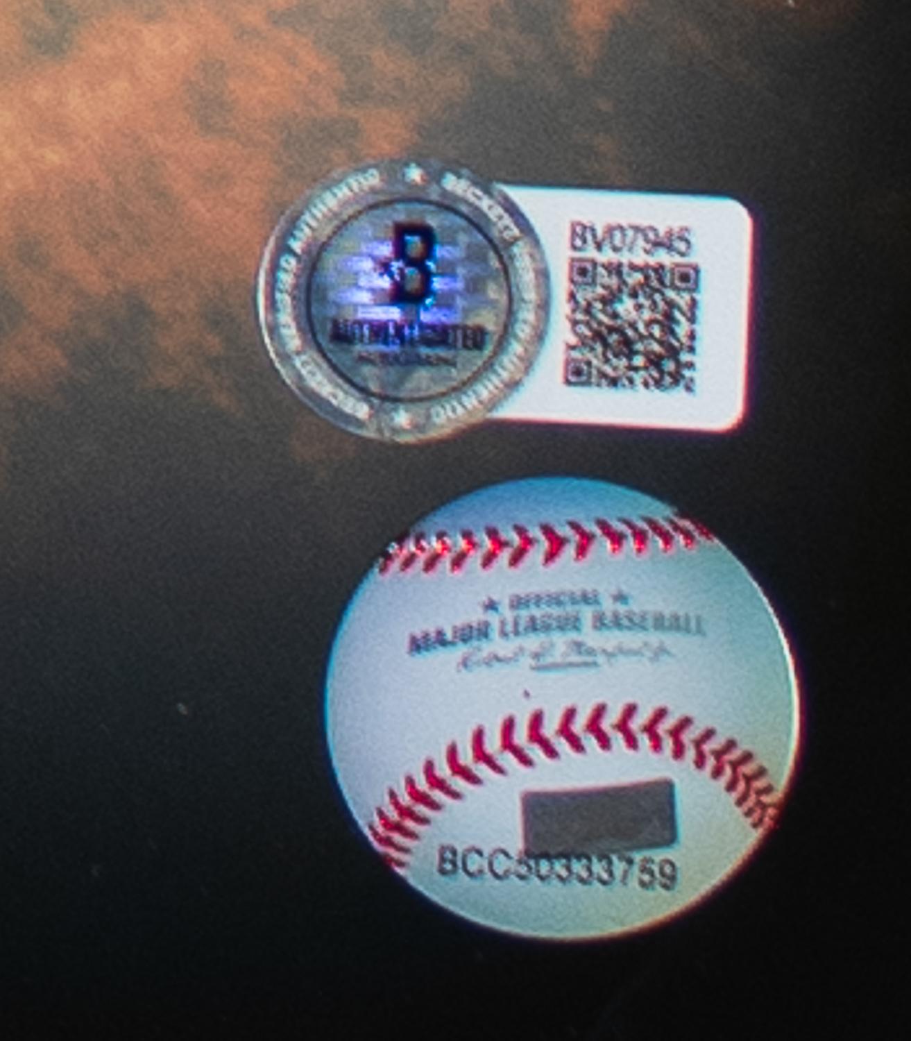 This autographed 16x20 photo has been personally hand-signed by Jose Altuve of the Houston Astros. This autograph is certified by Beckett Authentication Services (BAS) Certification. It comes with the numbered authentication hologram with a QR code that verifies the authentication on the Beckett website.