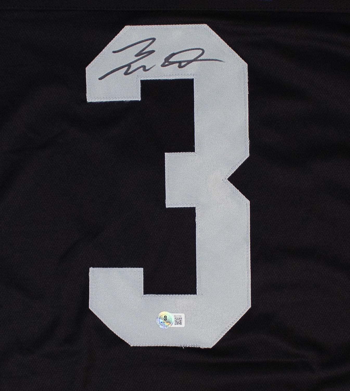 This autographed jersey has been personally hand-signed by Zamir White of the Las Vegas Raiders. This autograph is certified by Beckett Authentication Services (BAS). It comes with the numbered authentication hologram with a QR code that verifies the authentication on the Beckett website.