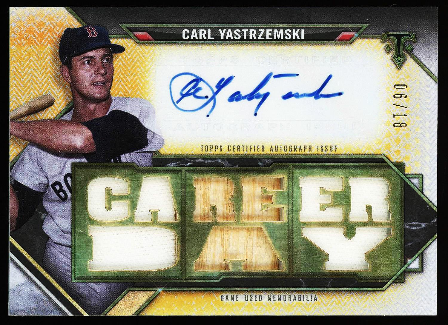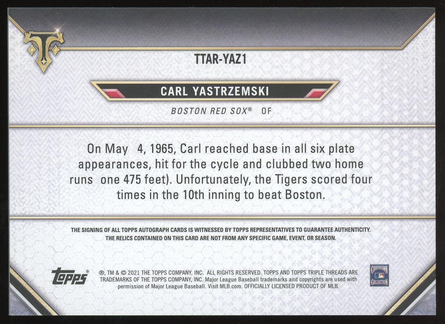 Carl Yastrzemski 2021 Topps Triple Threads Triple Patch Auto Card /18. Please see pictures for details on the condition of this card.