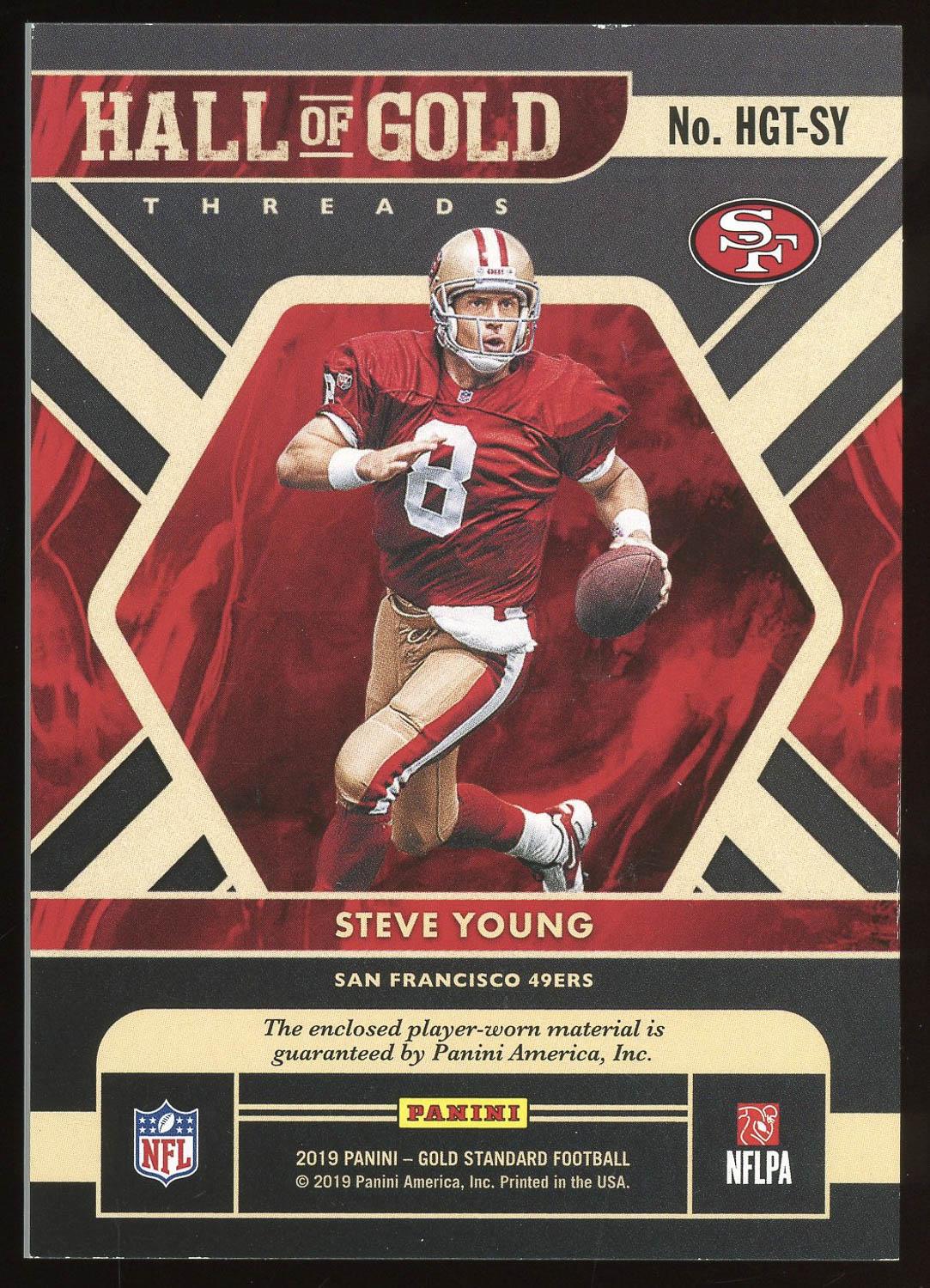 Steve Young 2019 Panini Gold Standard Hall of Gold Threads Patch Card /149. Please see pictures for details on the condition of this card.