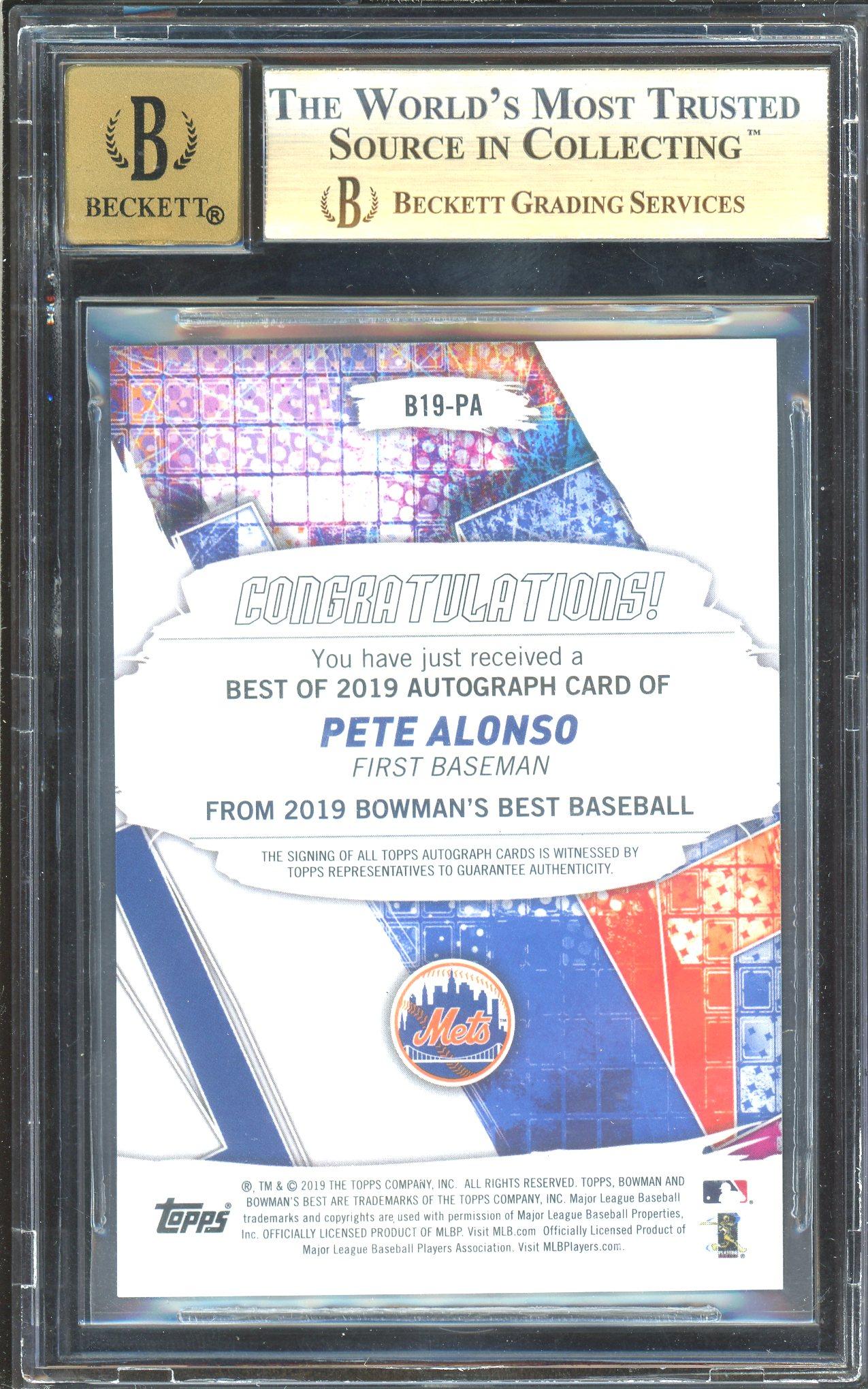 Pete Alonso 2019 Bowman's Best Best of '19 Green Refractor Rookie Auto Card /99 BGS Gem Mint 9.5 Auto 10 POP 8!