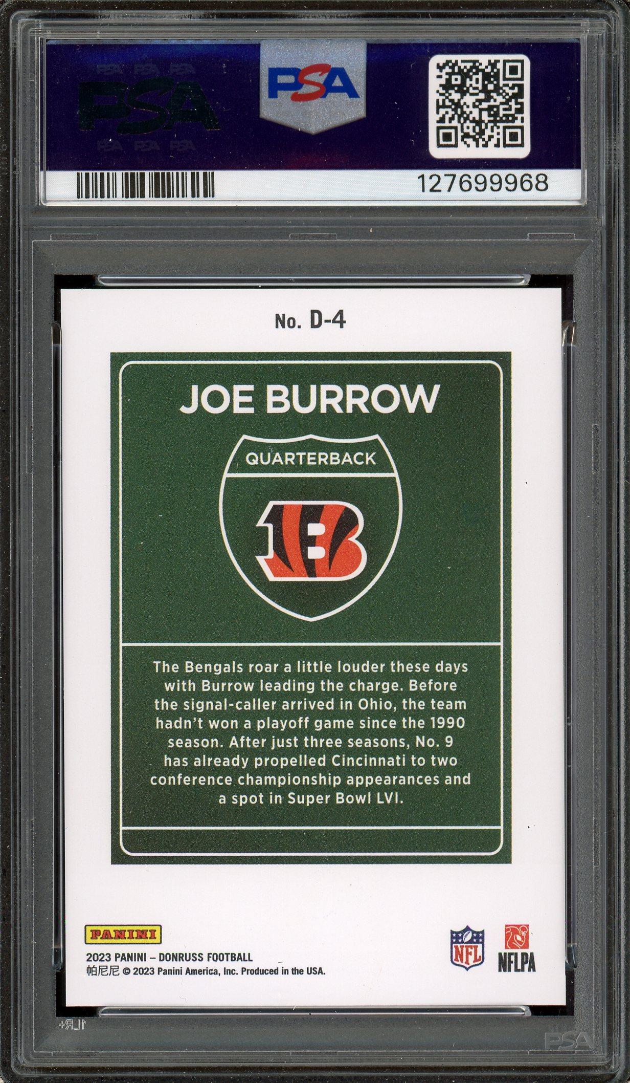 Joe Burrow 2023 Donruss Downtown Card PSA Gem Mint 10!