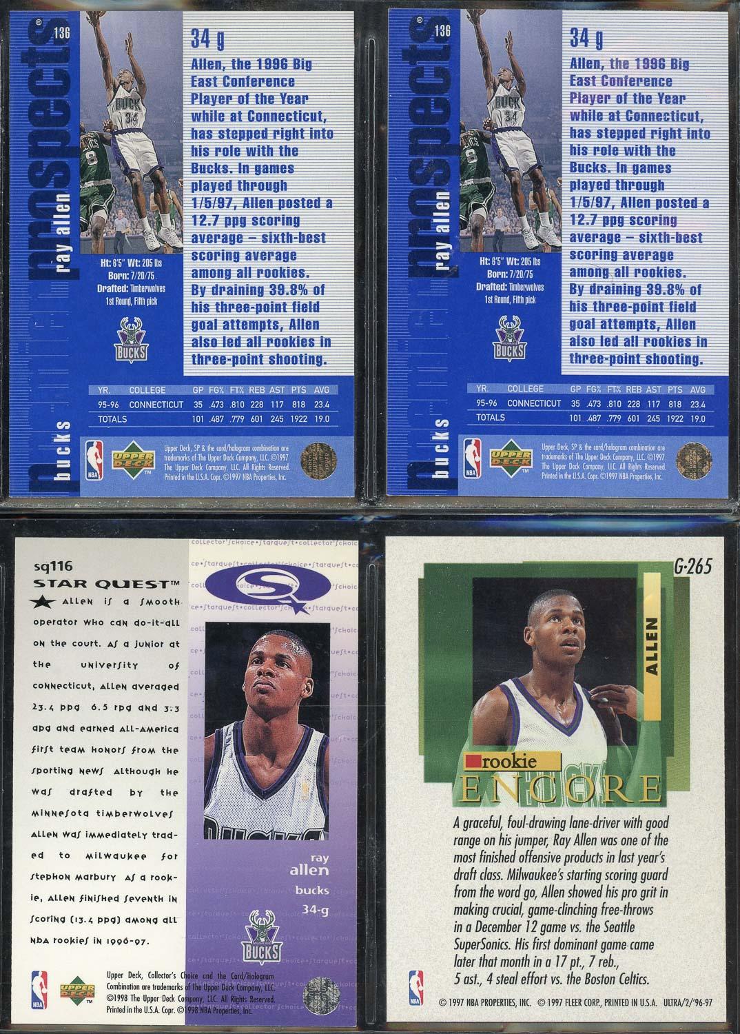 Lot of (4) Ray Allen 1996 Rookie Cards