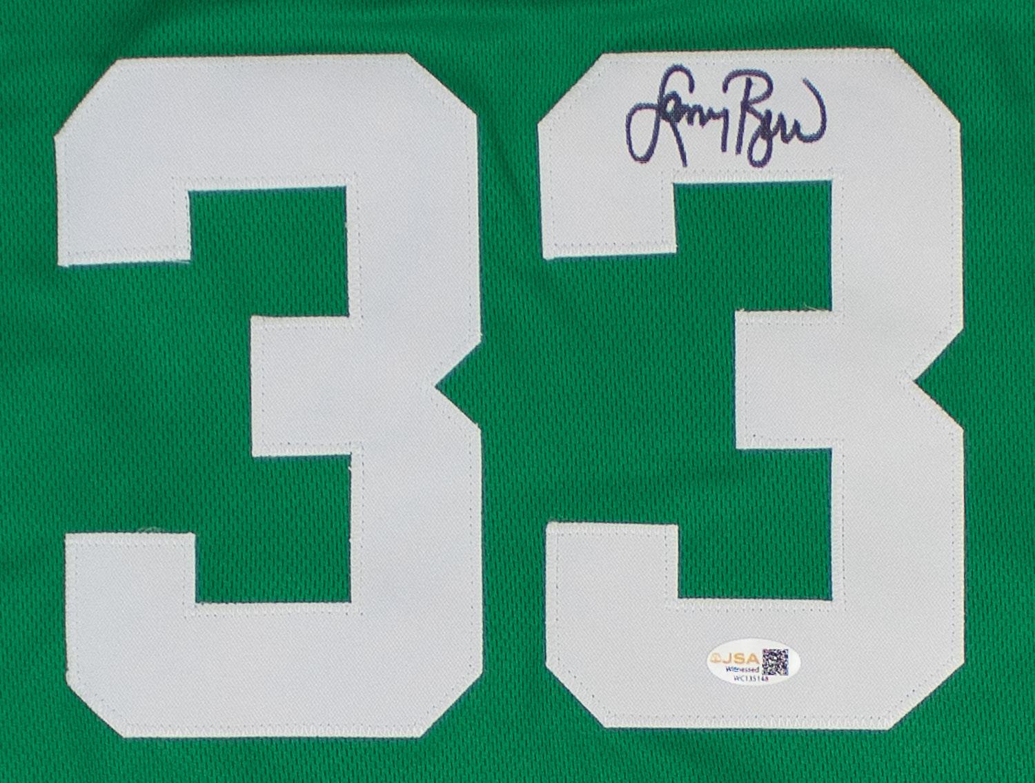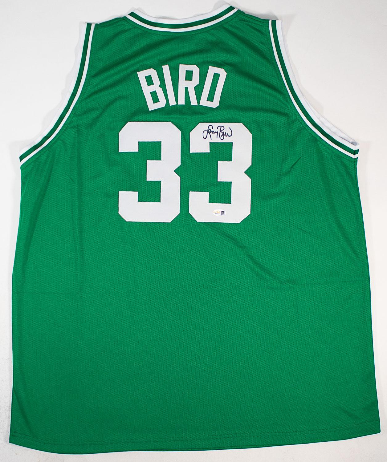 This autographed jersey has been personally hand-signed by Larry Bird of the Boston Celtics. This autograph is certified by James Spence Authentication's (JSA) Witnessed Protection Program. That means that a JSA representative was present when this item was signed. It comes with the numbered authentication hologram with a QR code that verifies the authentication on the JSA website.