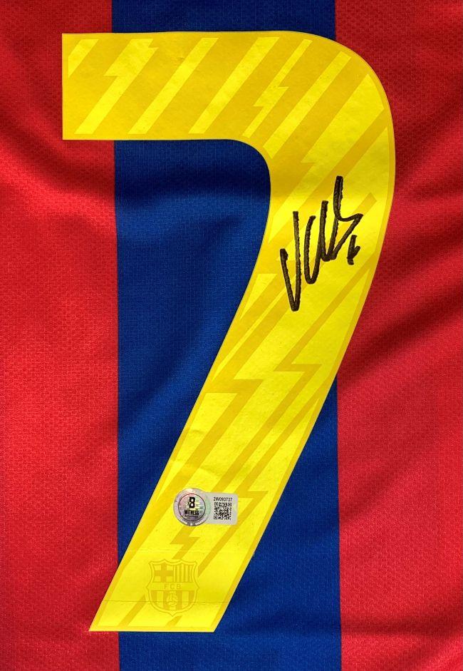 This autographed jersey has been personally hand-signed by David Villa of Barcelona. This autograph is certified by Beckett Authentication Services (BAS) Certification. It comes with the numbered authentication hologram with a QR code that verifies the authentication on the Beckett website.