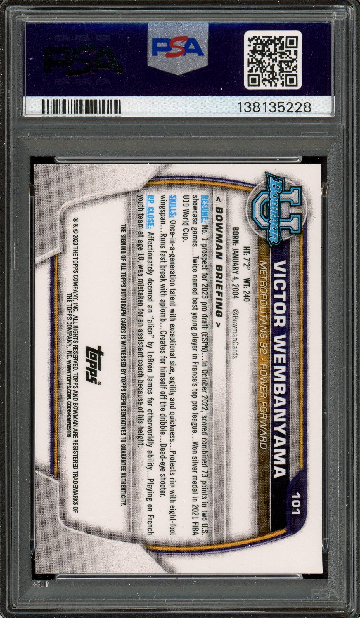 Victor Wembanyama 2022 Bowman University Prospect 1st Bowman Auto Card #101 PSA Gem Mint 10 Auto 10 POP !