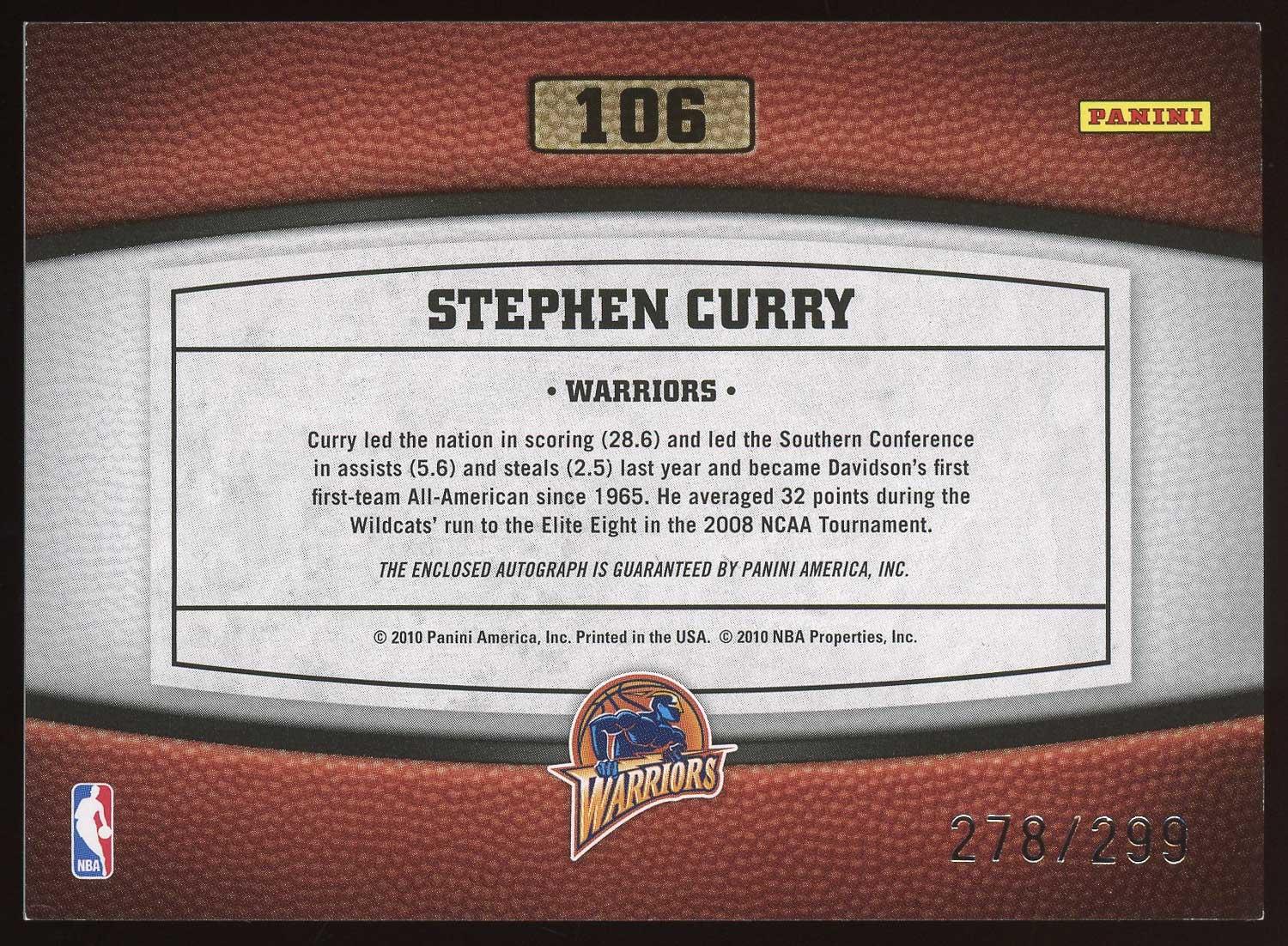 Stephen Curry 2009 Panini Timeless Treasures Rookie Recruits Auto Card /299. Please see pictures for details on the condition of this card. *Please note the signature shows significant fading.*