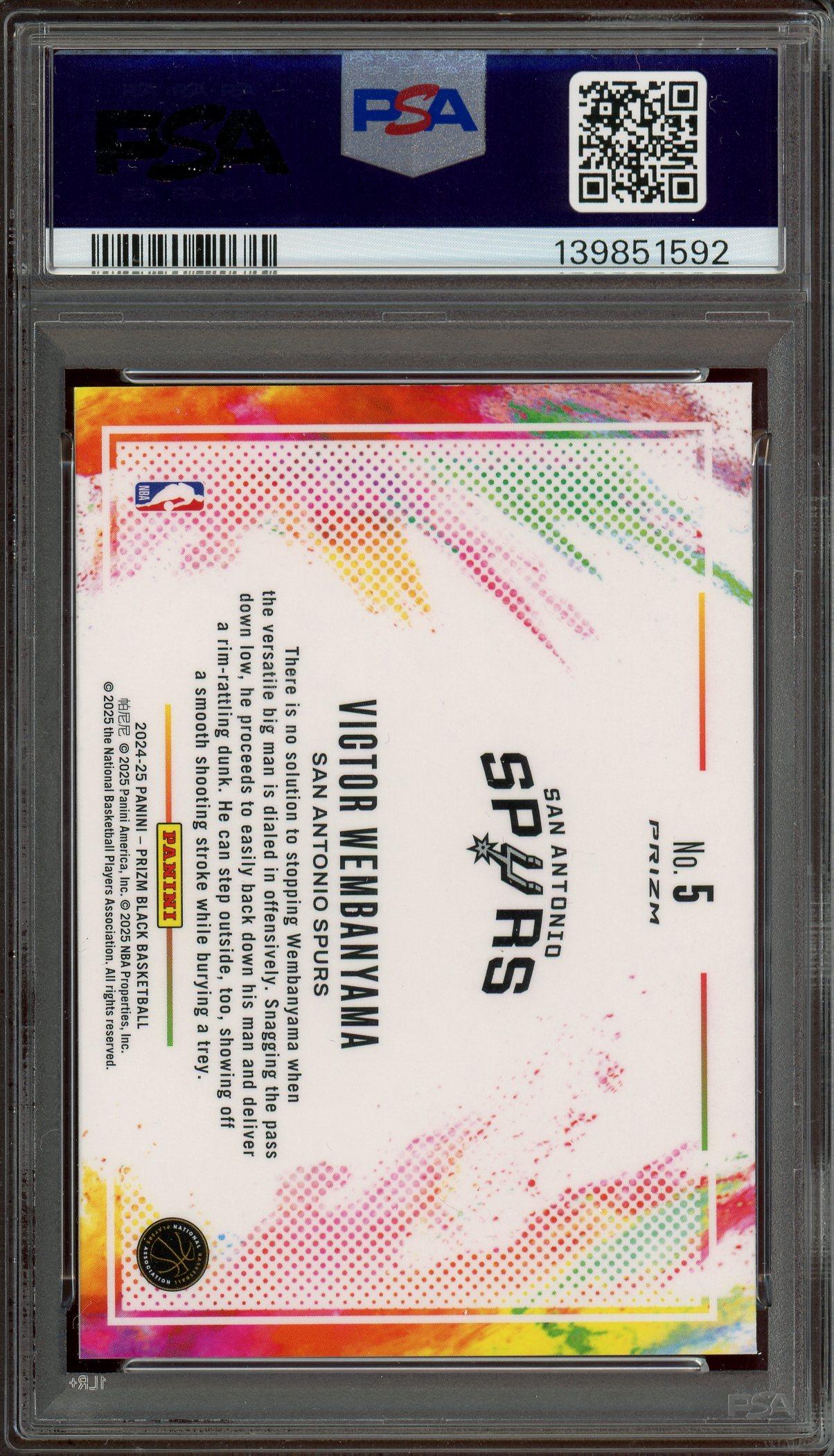Victor Wembanyama 2024 Panini Prizm Black Color Blast Card #5 PSA Gem Mint 10 POP 38!