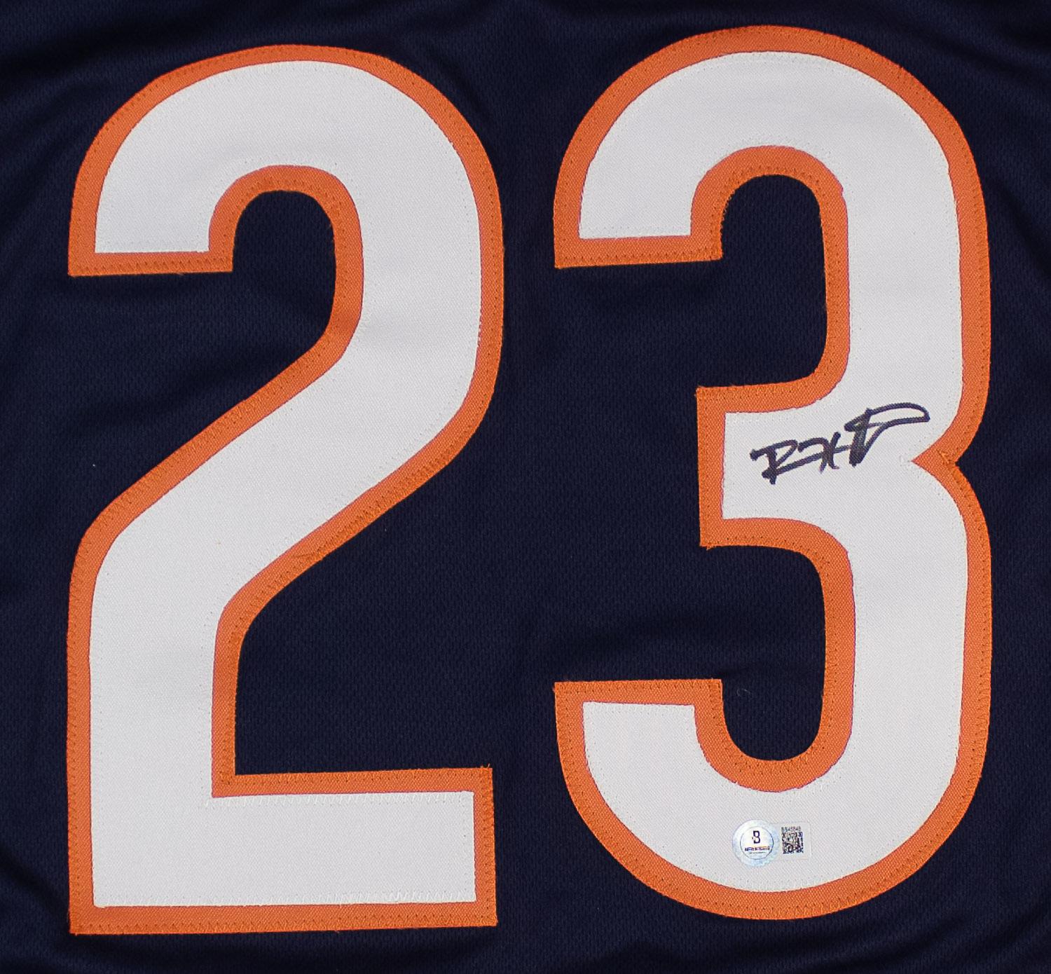 This autographed jersey has been personally hand-signed by Devin Hester of the Chicago Bears. This autograph is certified by Beckett Authentication Services (BAS). It comes with the numbered authentication hologram with a QR code that verifies the authentication on the Beckett website.