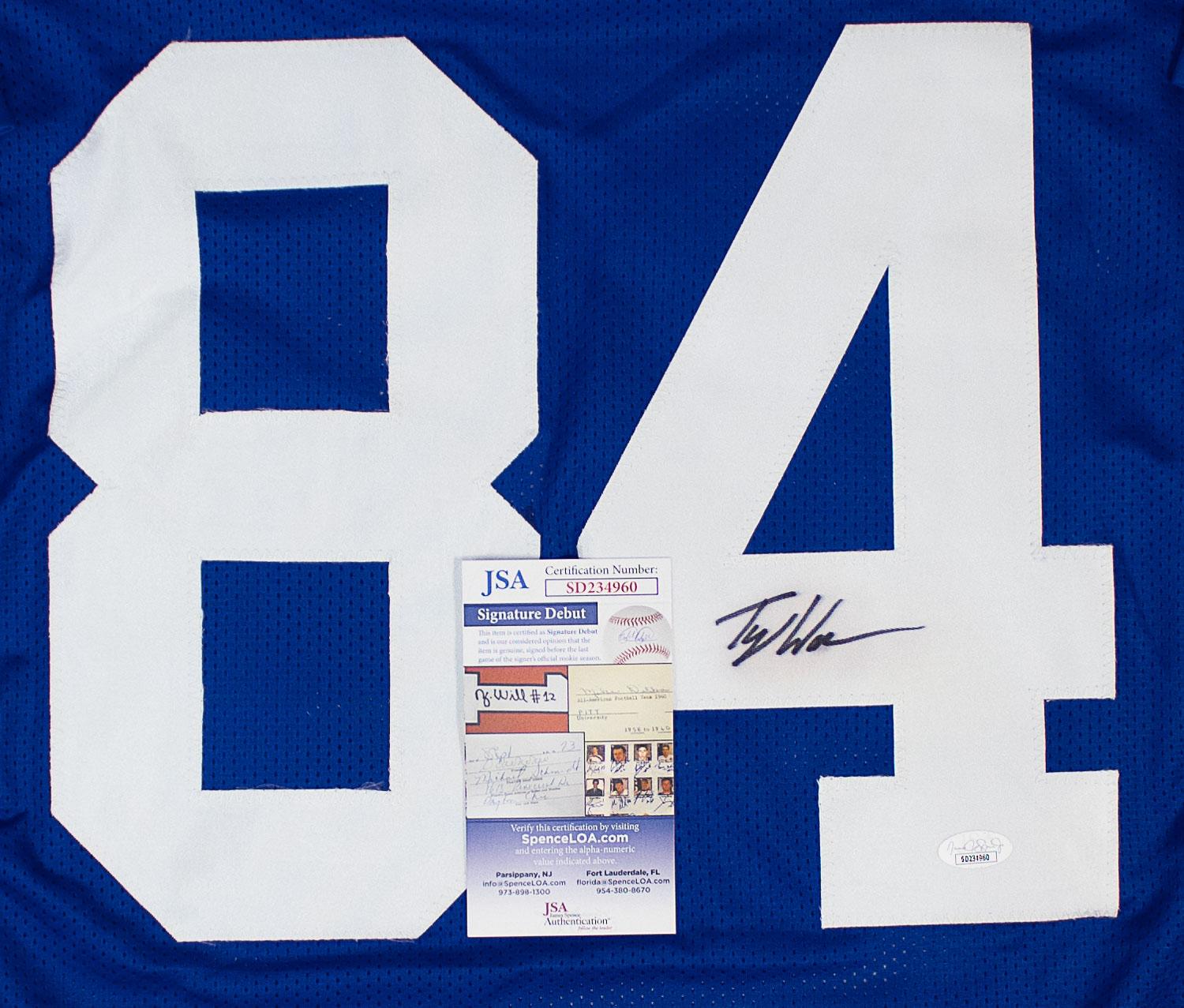 This autographed jersey has been personally hand-signed by Tyler Warren of the Indianapolis Colts. This autograph is certified by James Spence Authentication (JSA). It comes with the numbered hologram and matching Certificate of Authenticity.