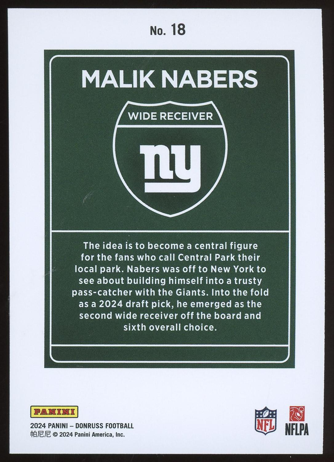 Malik Nabers 2024 Donruss Downtown Rookie Card #18. Please see pictures for details on the condition of this card.