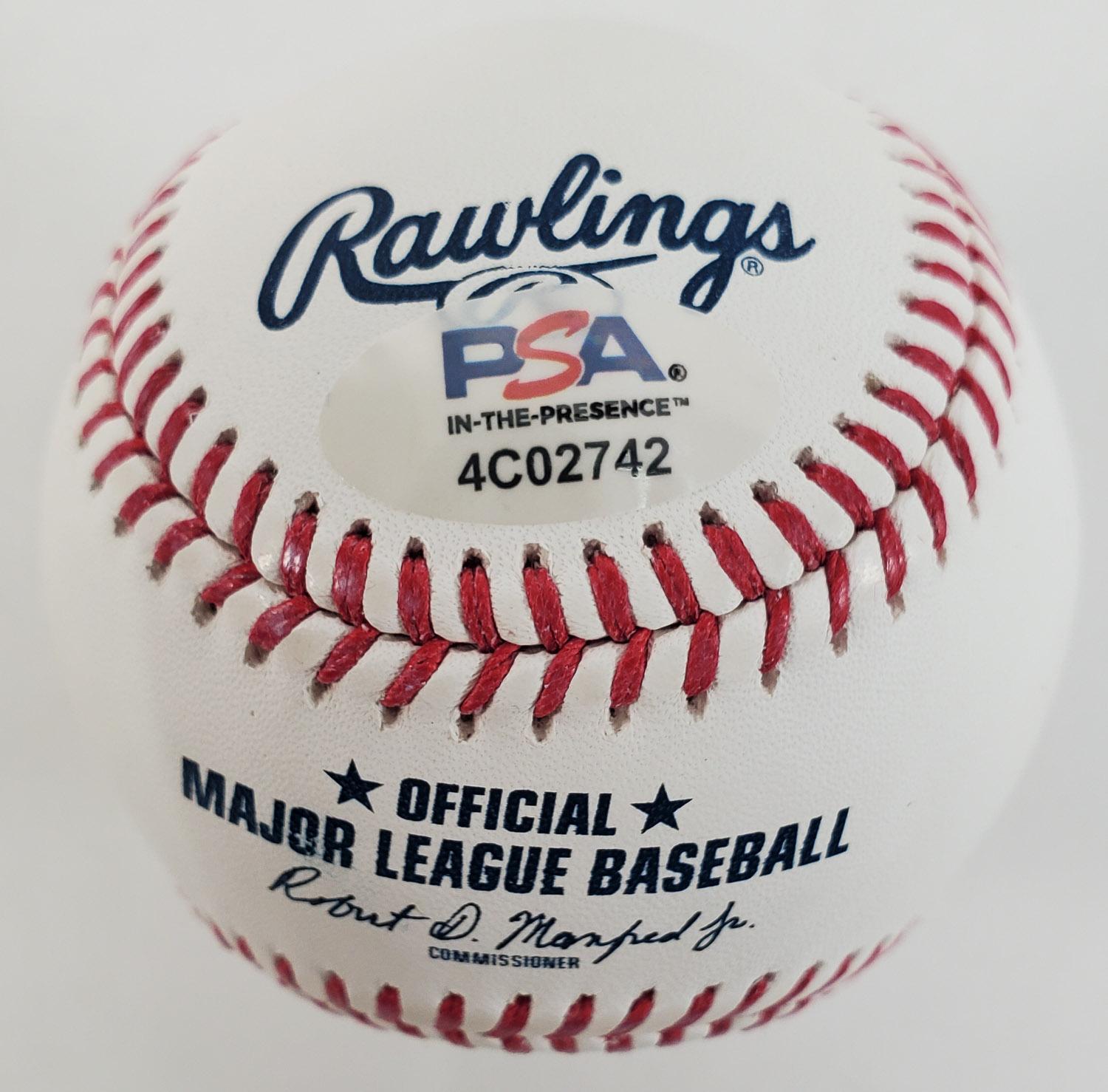 This autographed baseball has been personally hand-signed by Nolan Ryan of the Texas Rangers. This autograph is certified by PSA/DNA's (Professional Sports Authenticators) In The Presence authentication. That means that a PSA representative was present when this item was signed. It comes with the PSA numbered authentication hologram which can be verified on the PSA website, psacard.com. Please see all photos regarding the condition of this baseball.