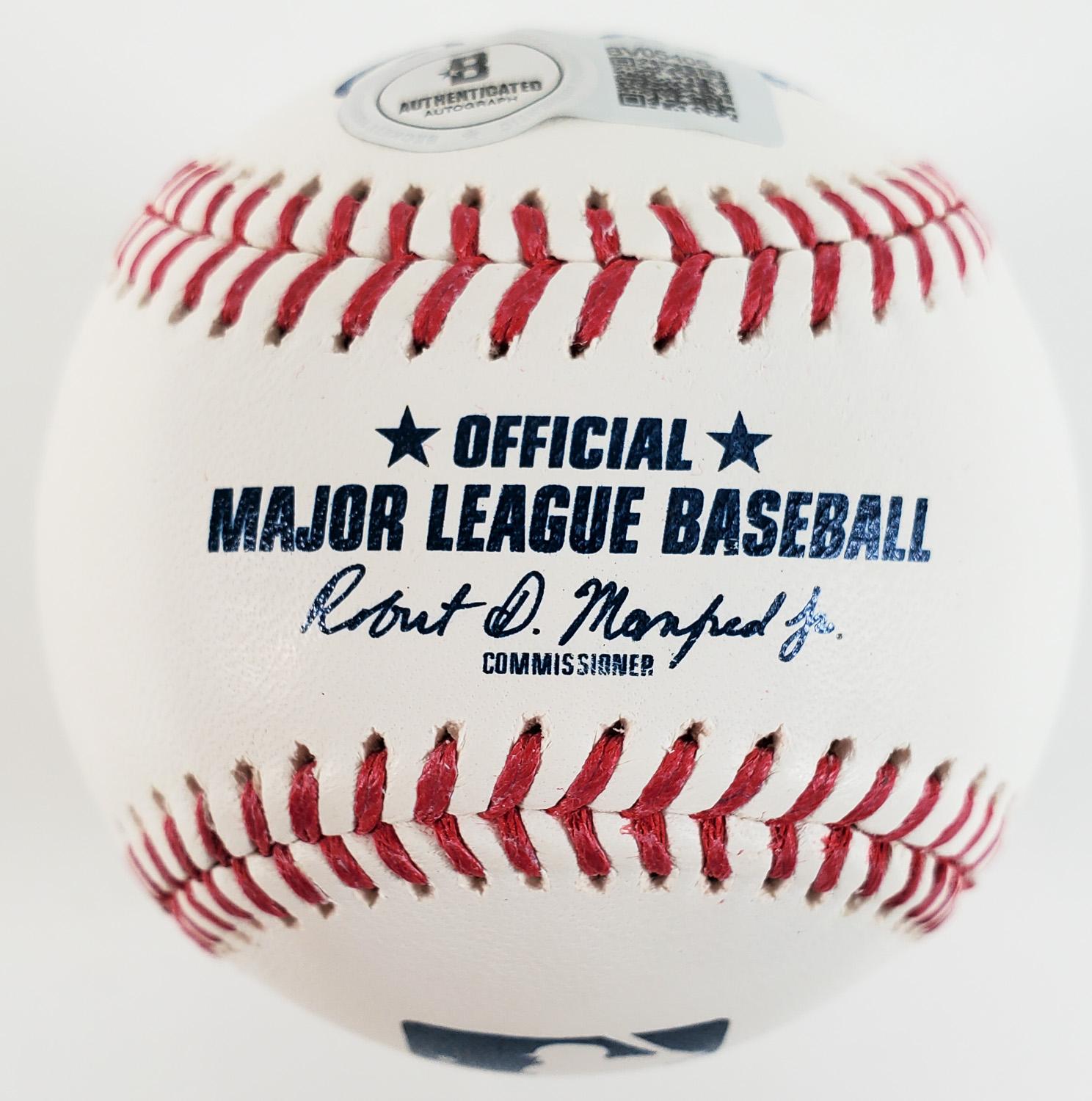 This autographed baseball has been personally hand-signed by Bobby Witt Jr of the Kansas City Royals. This autograph is certified by Beckett Authentication Services (BAS). It comes with the numbered authentication hologram with a QR code that verifies the authentication on the Beckett website. Please see all photos regarding the condition of this baseball.
