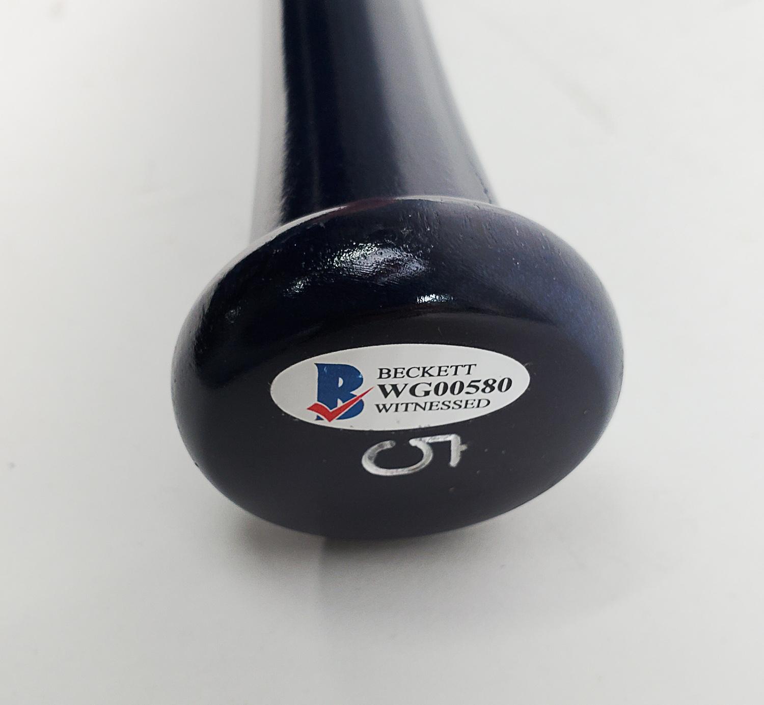 This autographed baseball bat has been personally hand-signed by Freddie Freeman "2020 NL MVP" of the Atlanta Braves and currently, Los Angeles Dodgers. This autograph is certified by Beckett Authentication Services (BAS) Witness Certification. That means that a Beckett representative was present when this item was signed. It comes with the numbered authentication hologram.
