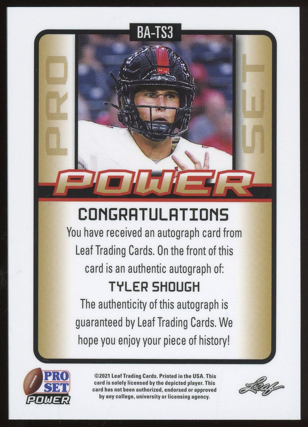 Tyler Shough 2021 Leaf Pro Set Power RC Auto Card. Please see pictures for details on the condition of this card.