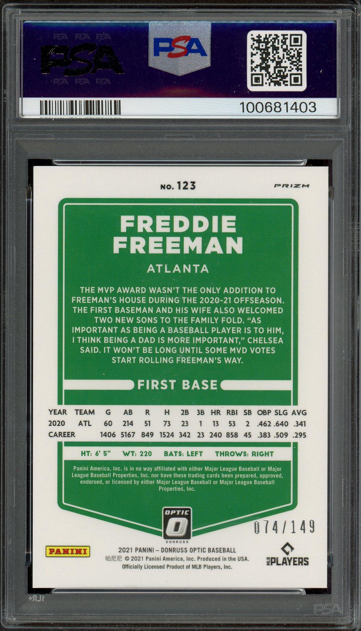 Freddie Freeman 2021 Donruss Optic Black Stars Card /149 PSA 9: POP 1, None Higher!