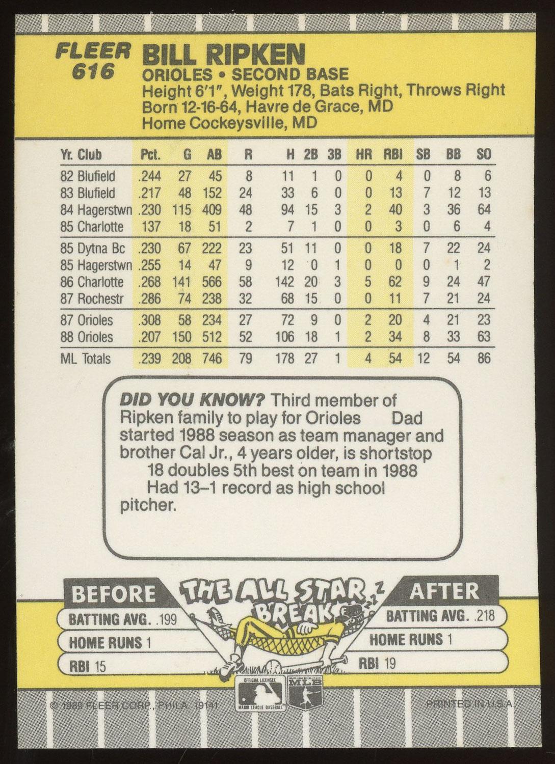 Billy Ripken 1989 Fleer "F*** Face" Card #616