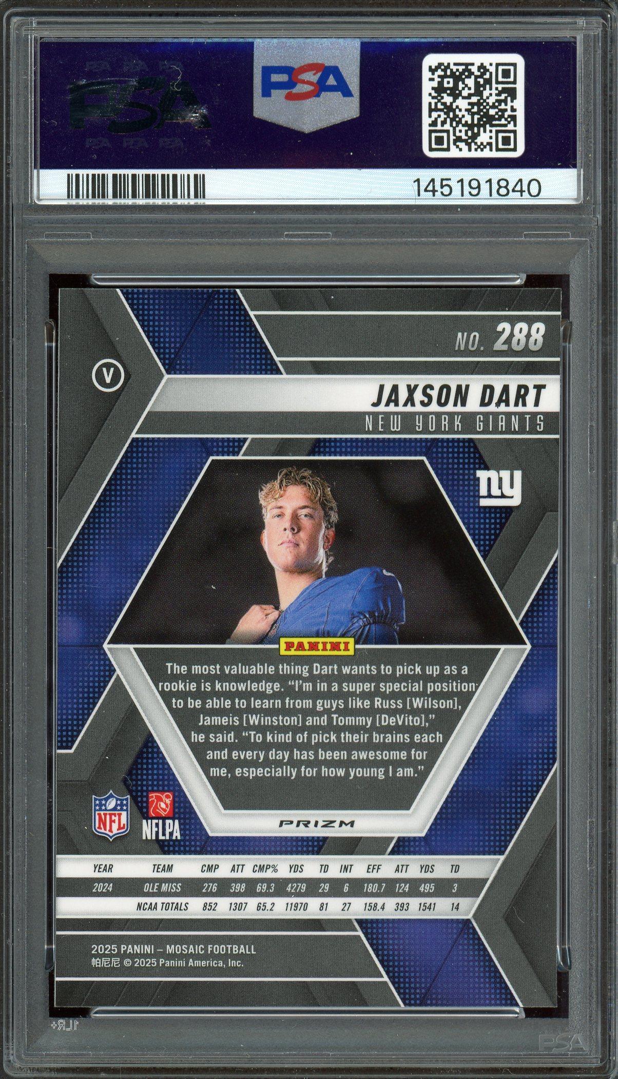 Jaxson Dart 2025 Panini Mosaic Red Rookie Card #288 PSA Gem Mint 10!