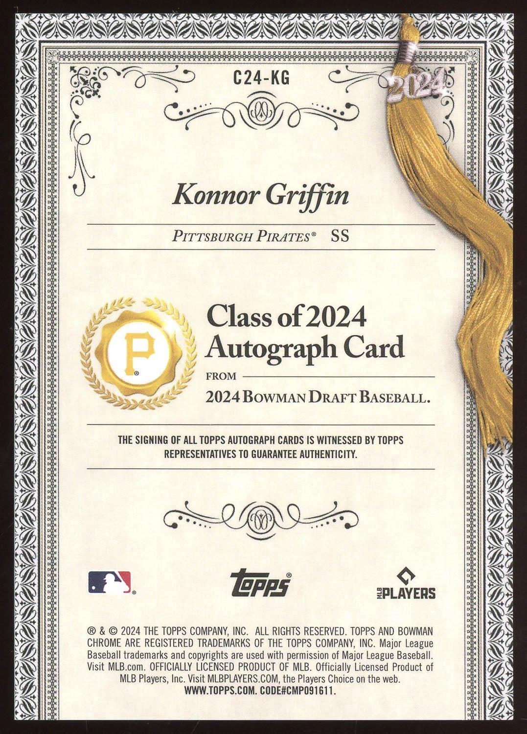 Konnor Griffin 2024 Bowman Chrome Class of 2024 Auto Card /250