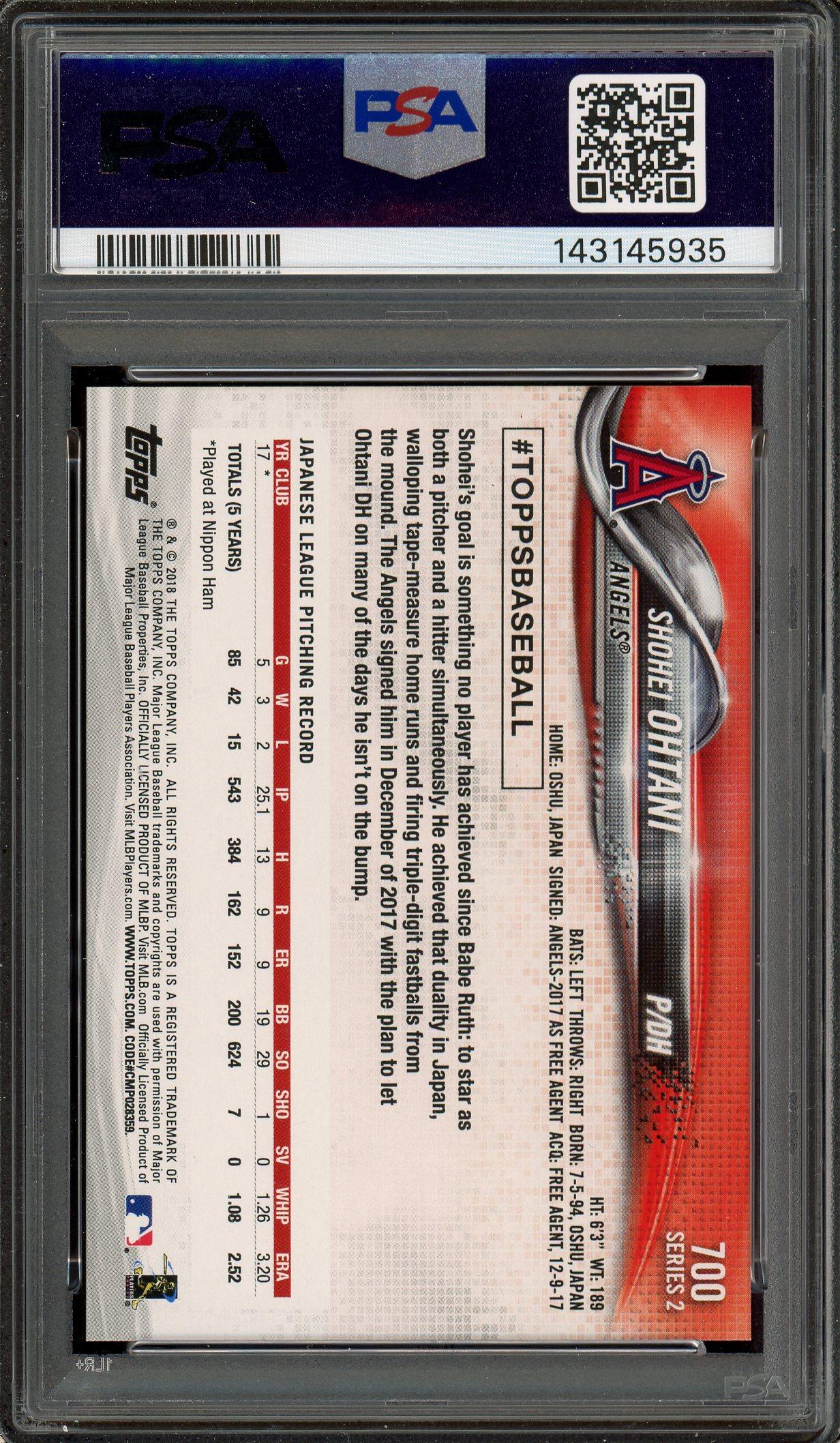 Shohei Ohtani 2018 Topps Pitching Rookie Card #700 PSA 9
