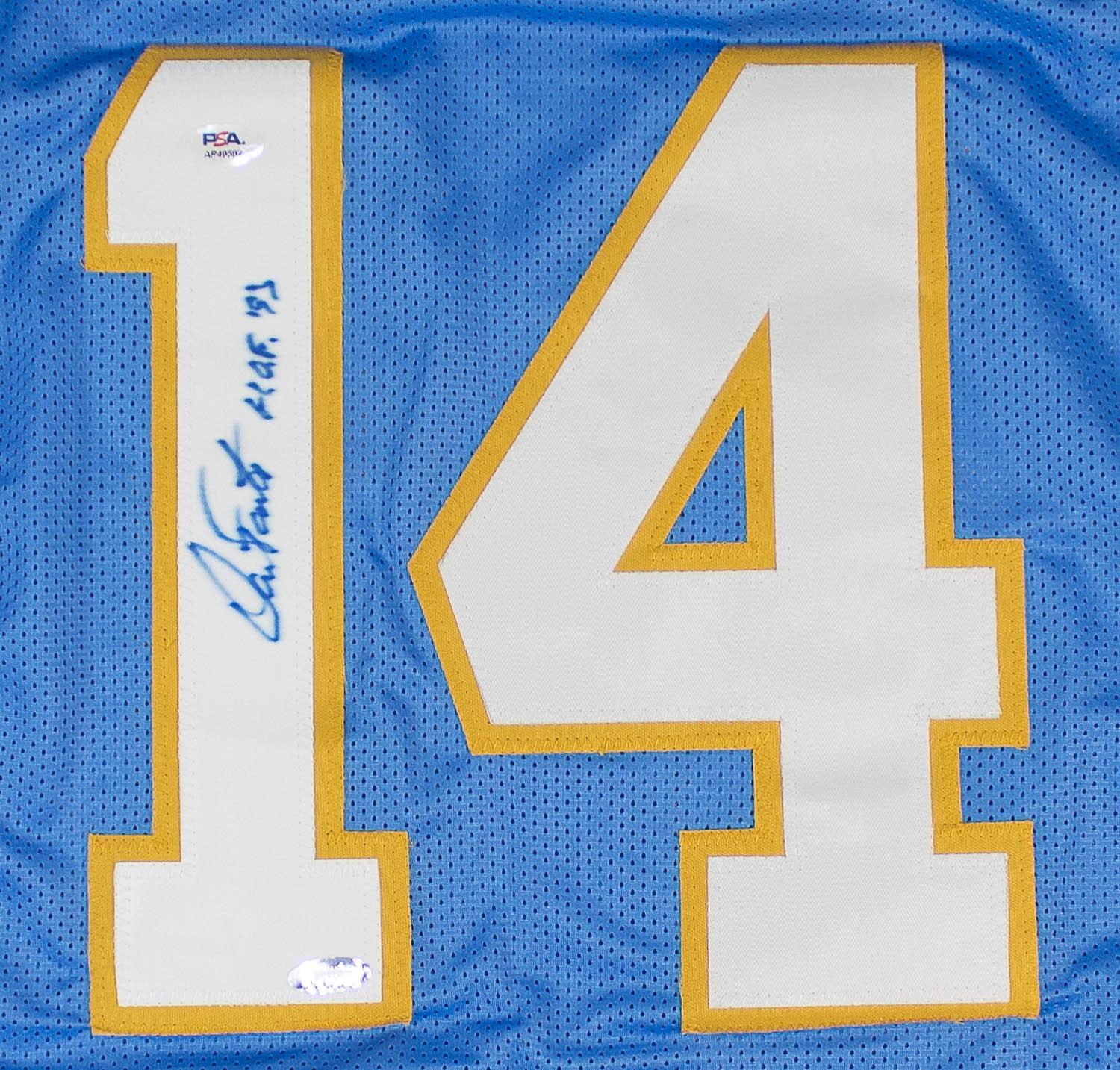 This autographed jersey has been personally hand-signed by Dan Fouts "HOF 93" of the San Diego Chargers. This autograph is certified by PSA/DNA (Professional Sports Authenticators). It comes with the numbered authentication hologram which can be verified on the PSA website, psacard.com.