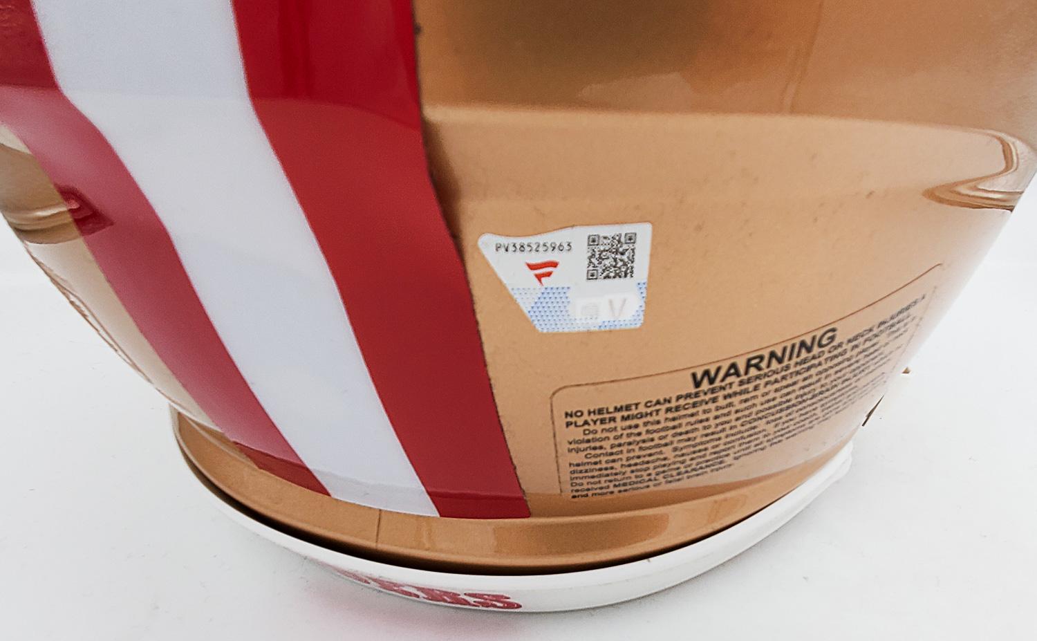 This autographed full size Riddell authentic Speed helmet has been personally hand-signed by Brock Purdy of the San Francisco 49ers. This autograph is certified by Fanatics. It comes with the numbered hologram which can be verified on Fanatics.com.