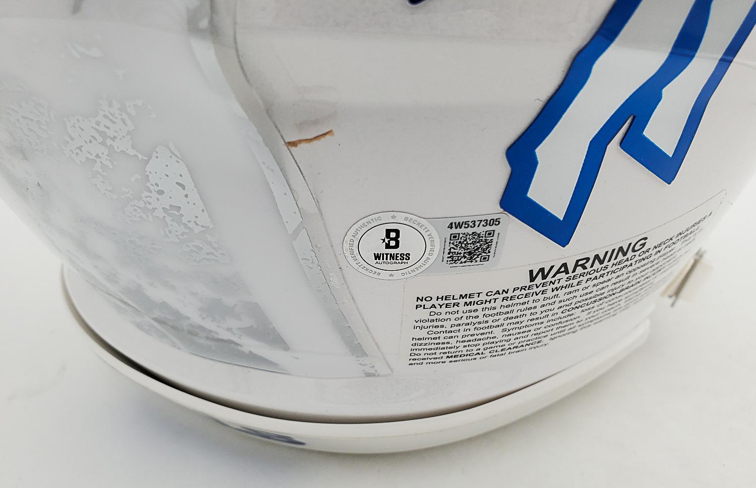 This autographed full size Riddell Authentic Speed helmet has been personally hand-signed by Josh Allen of the Buffalo Bills. This autograph is certified by Beckett Authentication Services (BAS) Witness Certification. That means that a Beckett representative was present when this item was signed. It comes with the numbered authentication hologram with a QR code that verifies the authentication on the Beckett website.