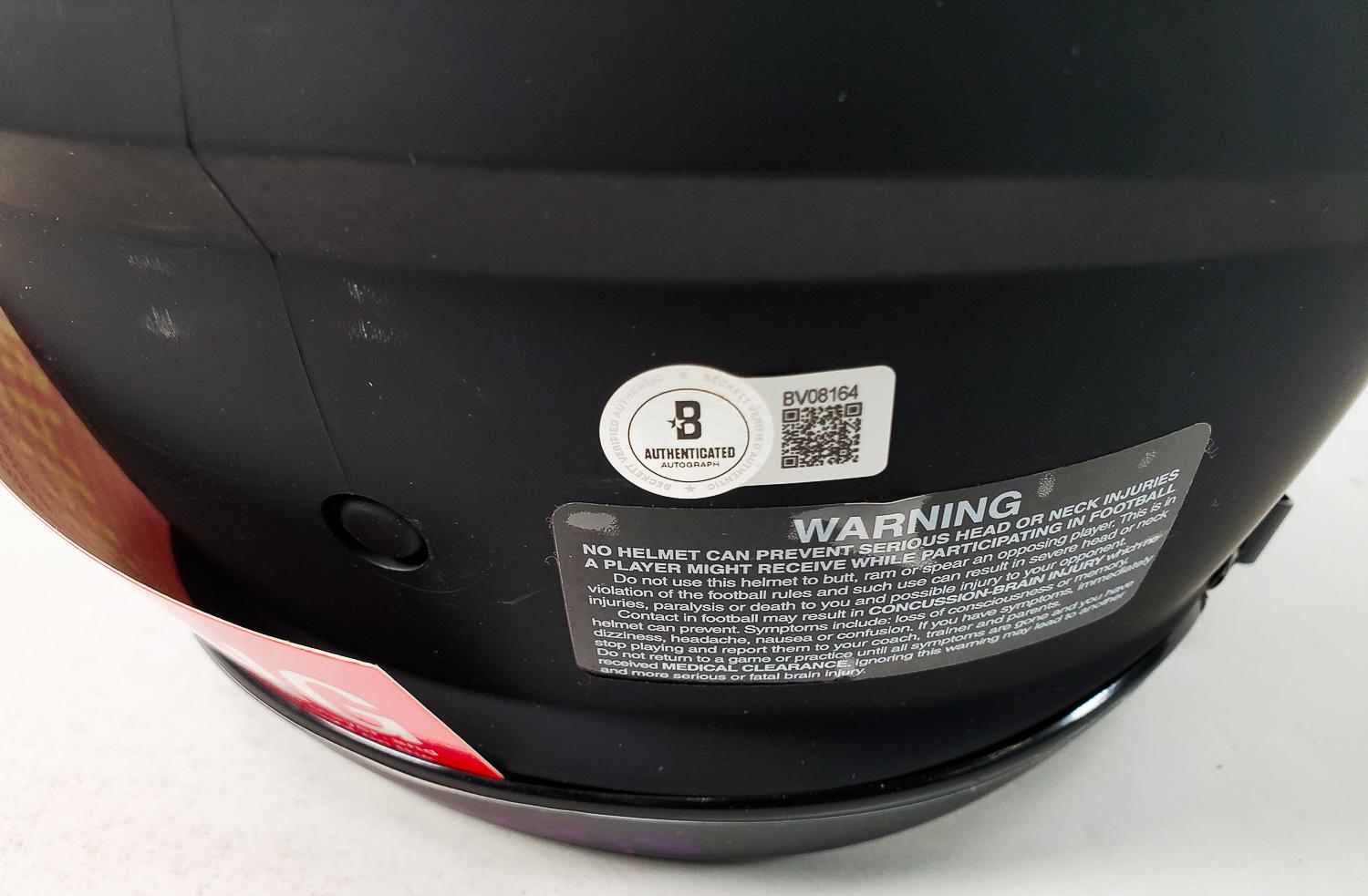 This autographed full size Riddell Authentic Speed helmet has been personally hand-signed by Herschel Walker of the Minnesota Vikings. This autograph is certified by Beckett Authentication Services. It comes with the numbered authentication hologram with a QR code that verifies the authentication on the Beckett website.
