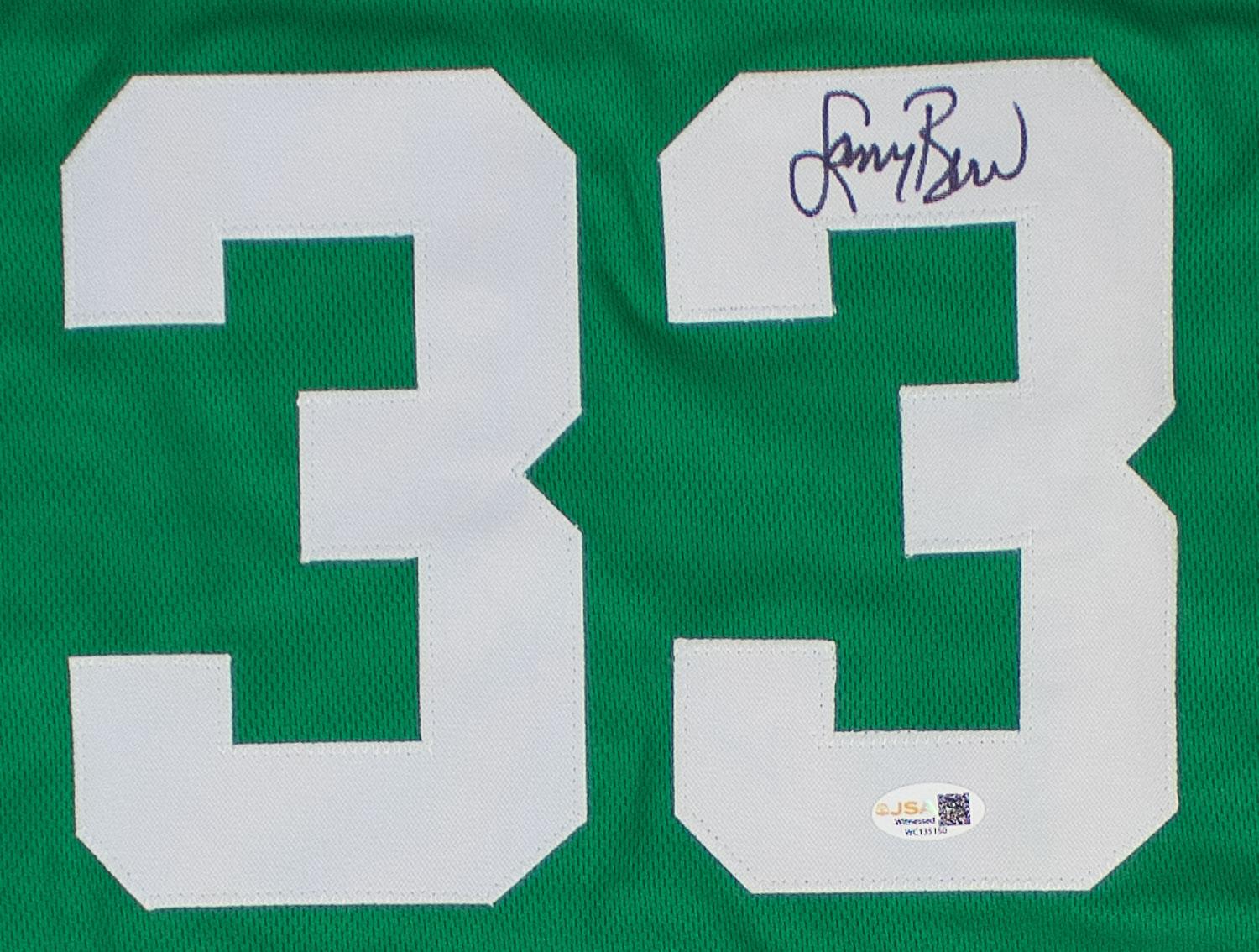 This autographed jersey has been personally hand-signed by Larry Bird of the Boston Celtics. This autograph is certified by James Spence Authentication's (JSA) Witnessed Protection Program. That means that a JSA representative was present when this item was signed. It comes with the numbered authentication hologram with a QR code that verifies the authentication on the JSA website.