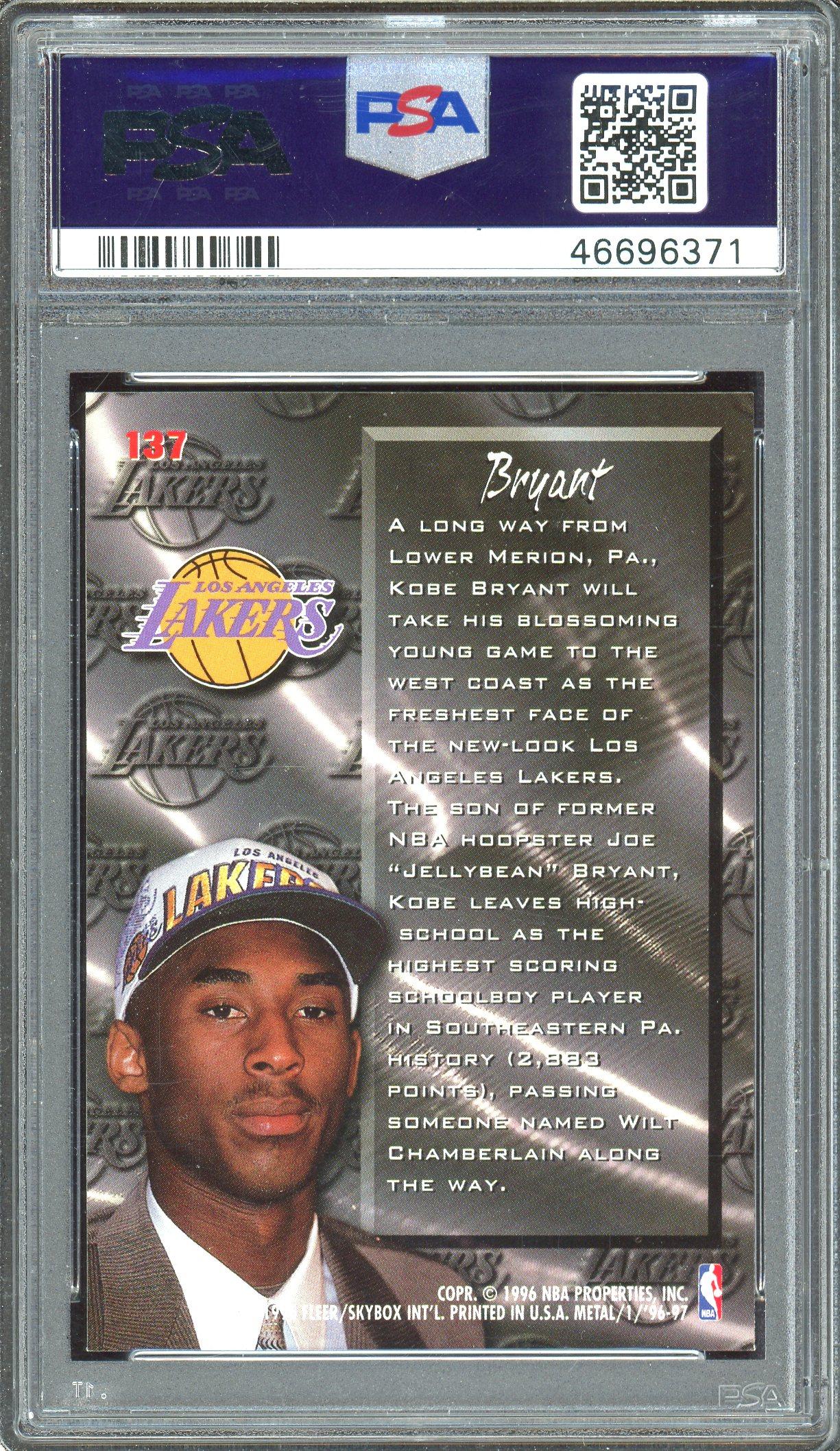 Kobe Bryant 1996 Fleer Metal Rookie Card #137 PSA 8