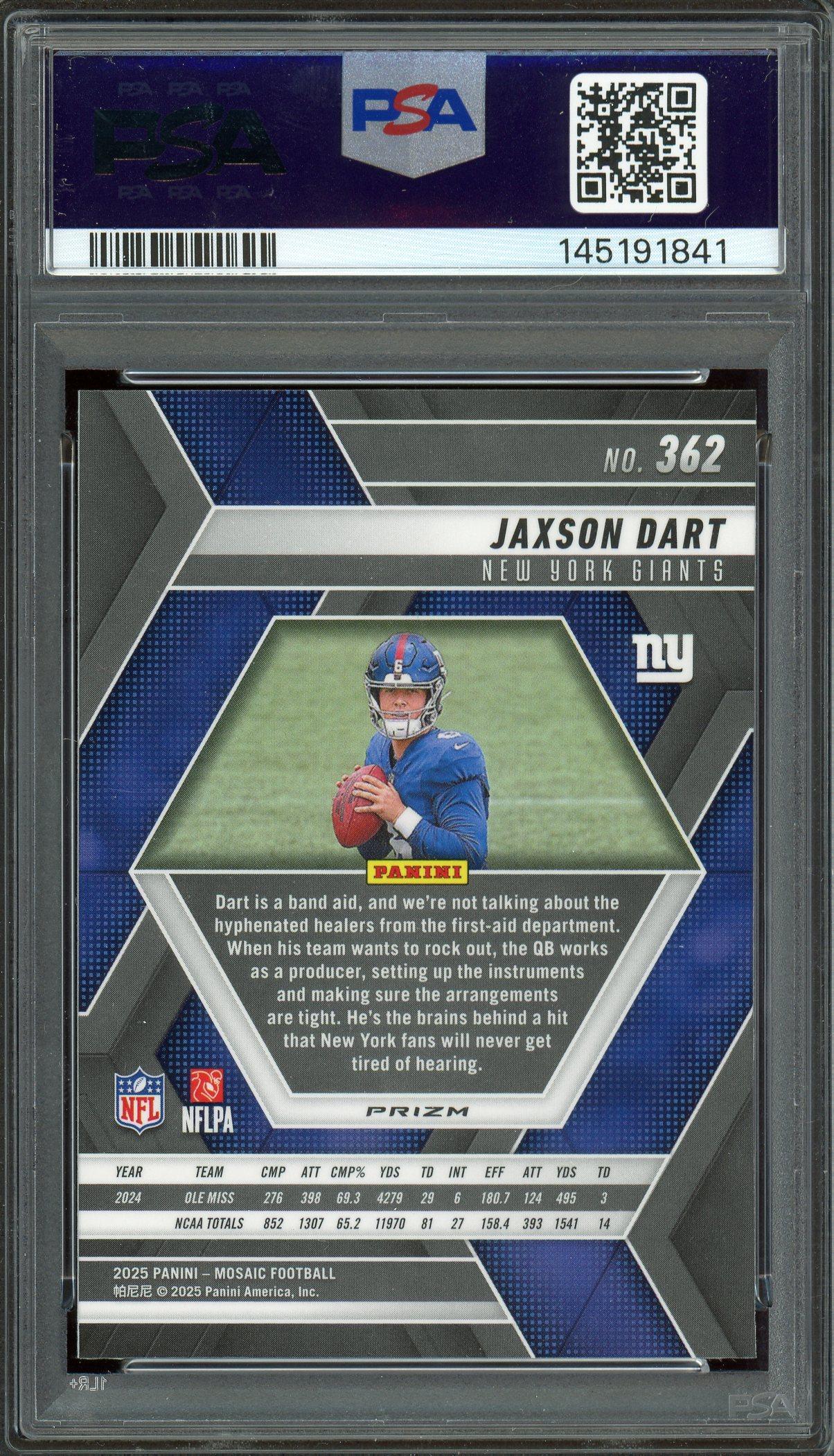 Jaxson Dart 2025 Panini Mosaic Green Rookie Card #362 PSA Gem Mint 10!