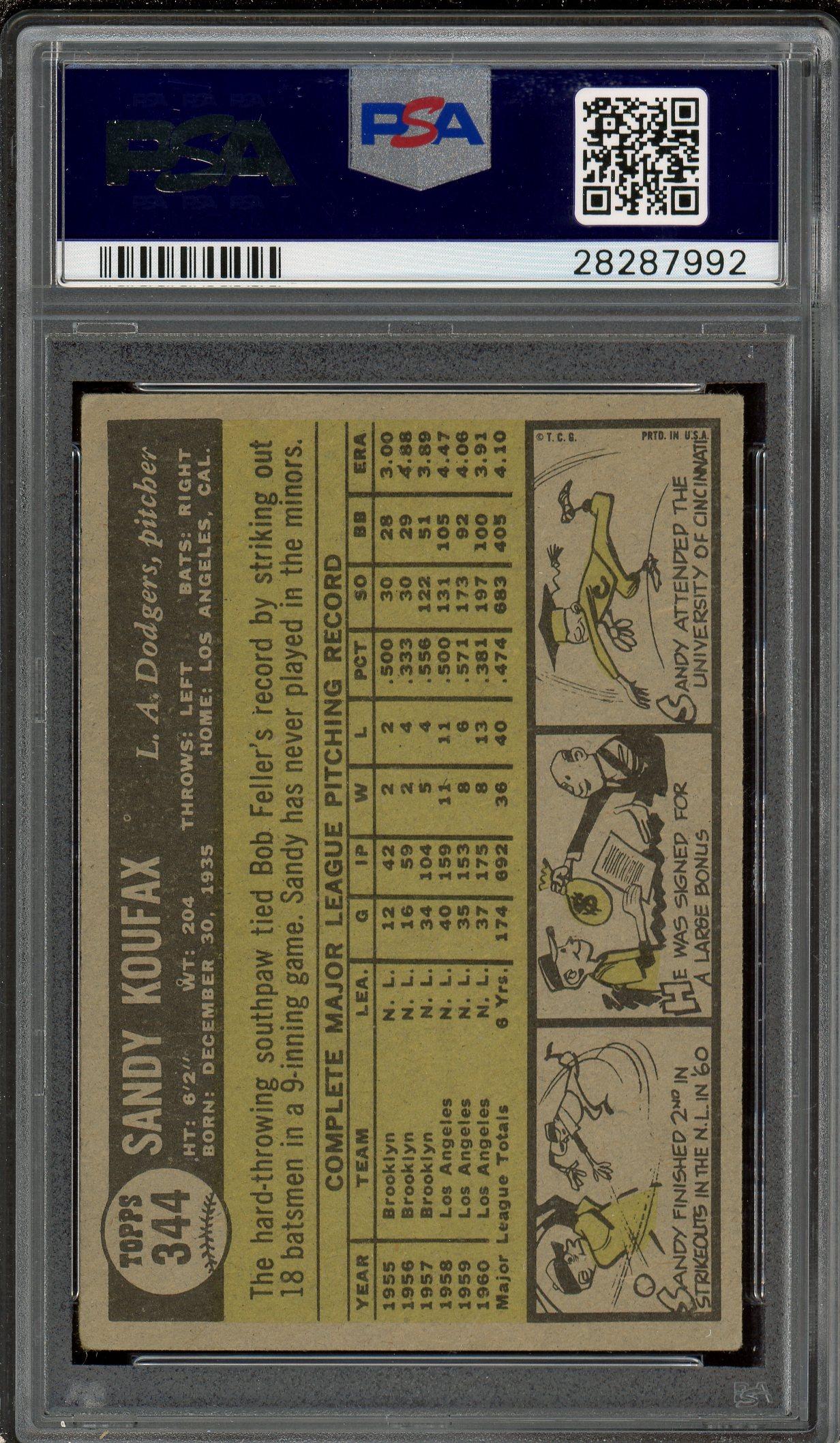 Sandy Koufax 1961 Topps Card #344 PSA 4