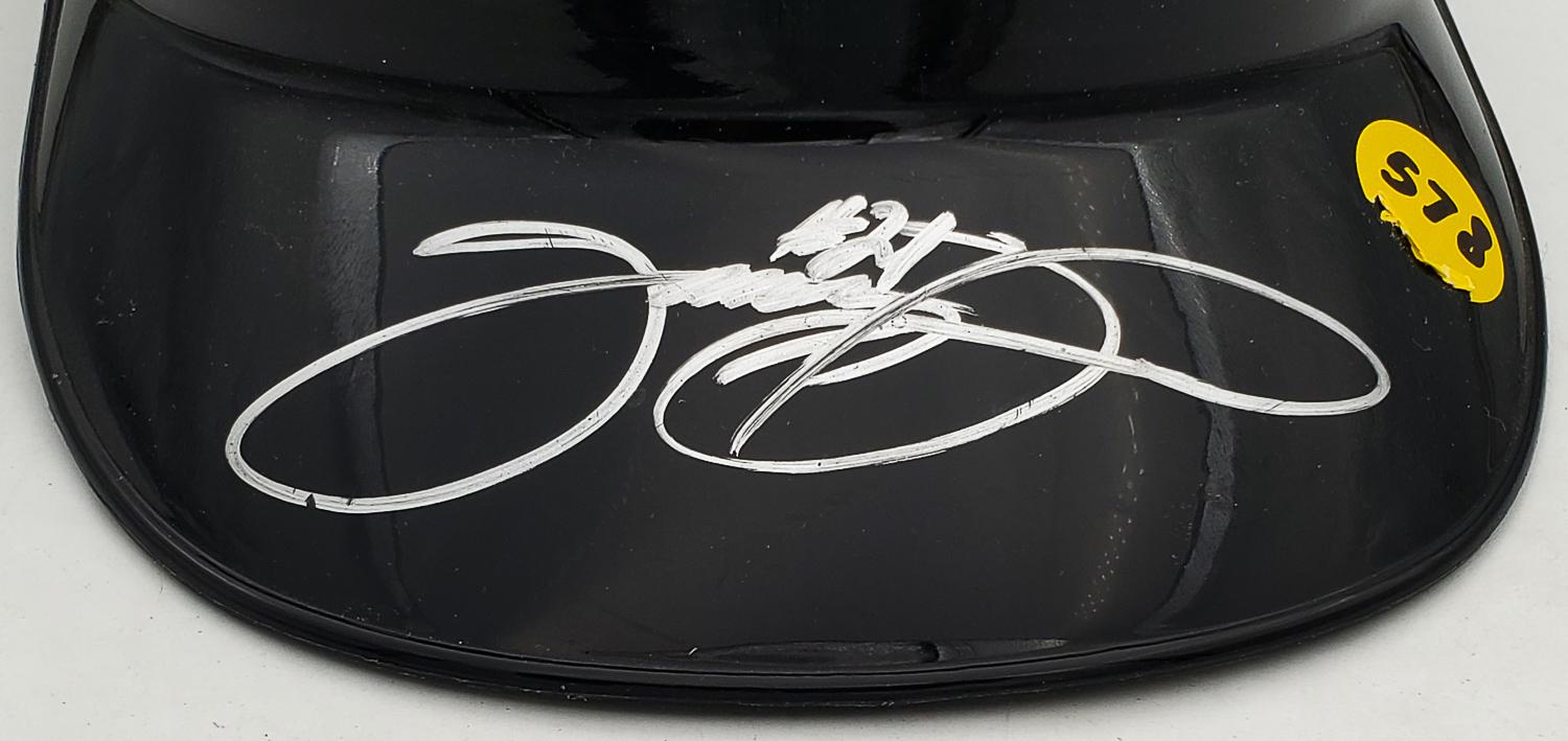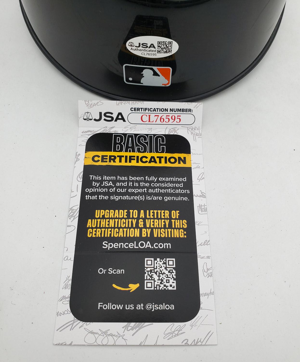 This autographed souvenir helmet has been personally hand-signed by Sammy Sosa of the Baltimore Orioles. This autograph is certified by James Spence Authentication (JSA). It comes with the numbered hologram and matching Certificate of Authenticity. **Please note, the yellow sticker with the hand written number on it is affixed to the item.