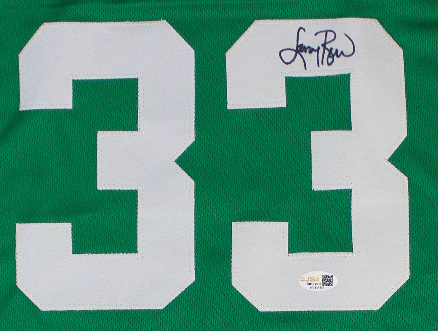 This autographed jersey has been personally hand-signed by Larry Bird of the Boston Celtics. This autograph is certified by James Spence Authentication's (JSA) Witnessed Protection Program. That means that a JSA representative was present when this item was signed. It comes with the numbered authentication hologram with a QR code that verifies the authentication on the JSA website.