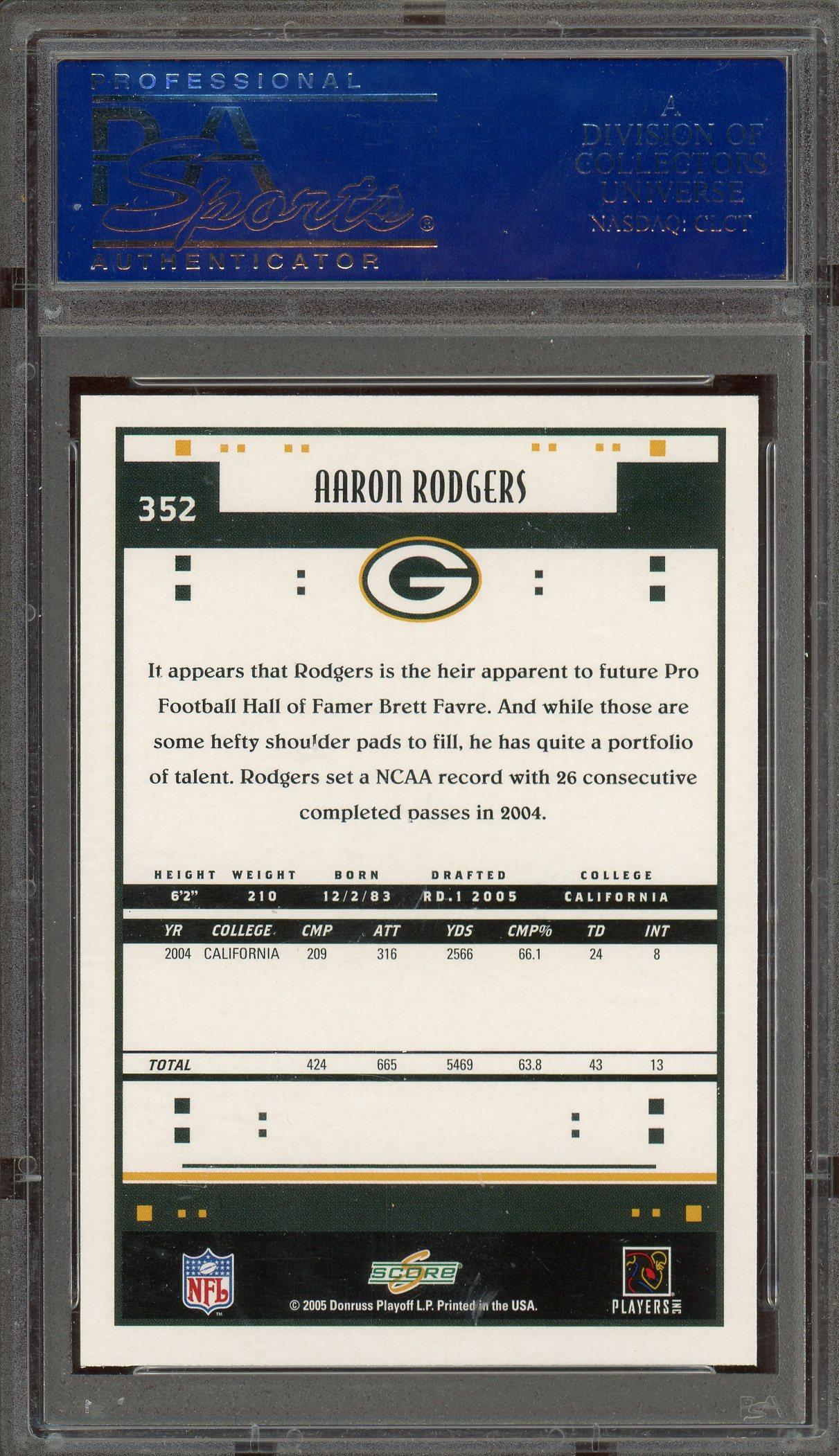 Aaron Rodgers 2005 Score Glossy Rookie Card #352 PSA Gem Mint 10!
