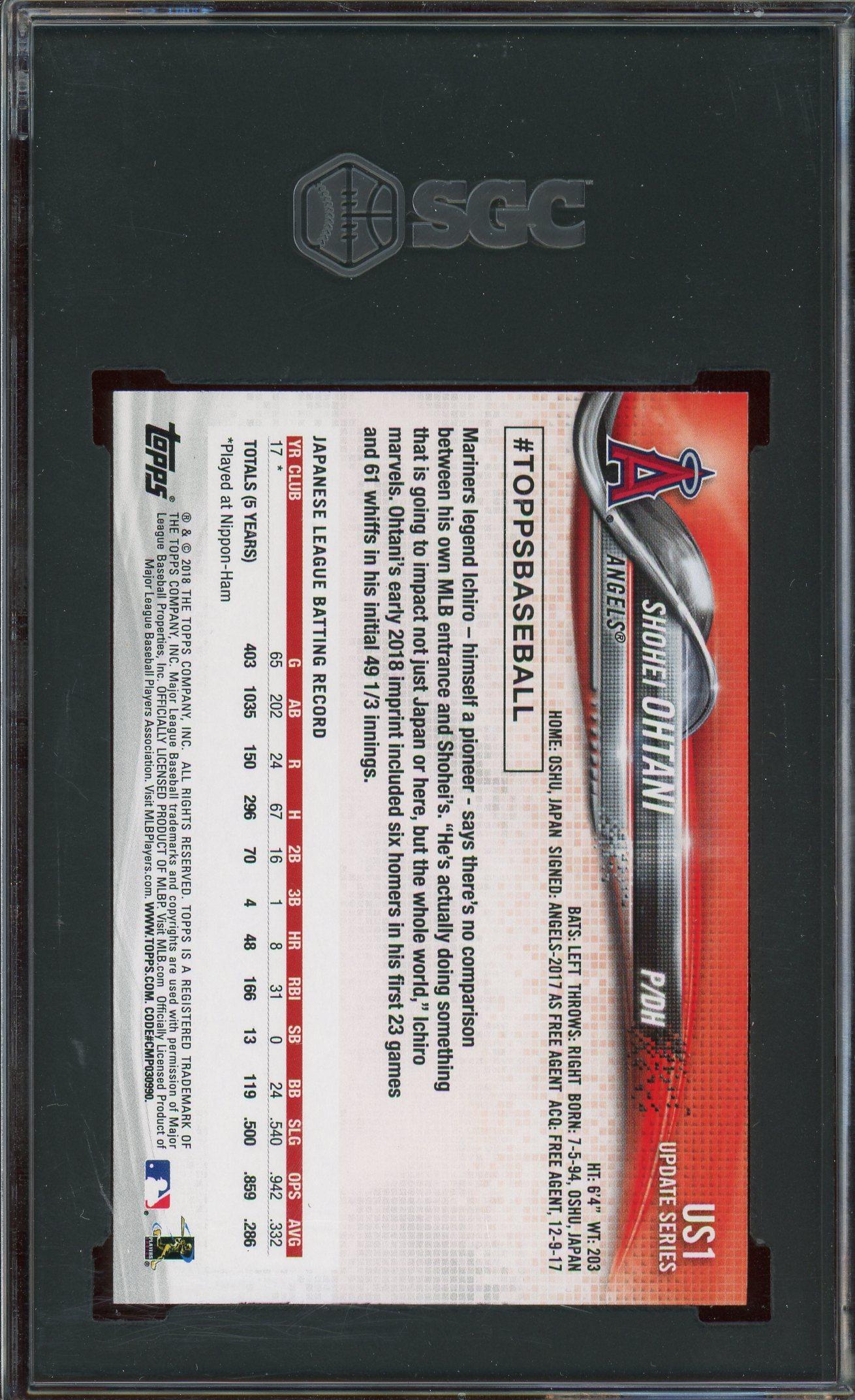 Shohei Ohtani 2018 Topps Update Rookie Card SGC Gem Mint 10!