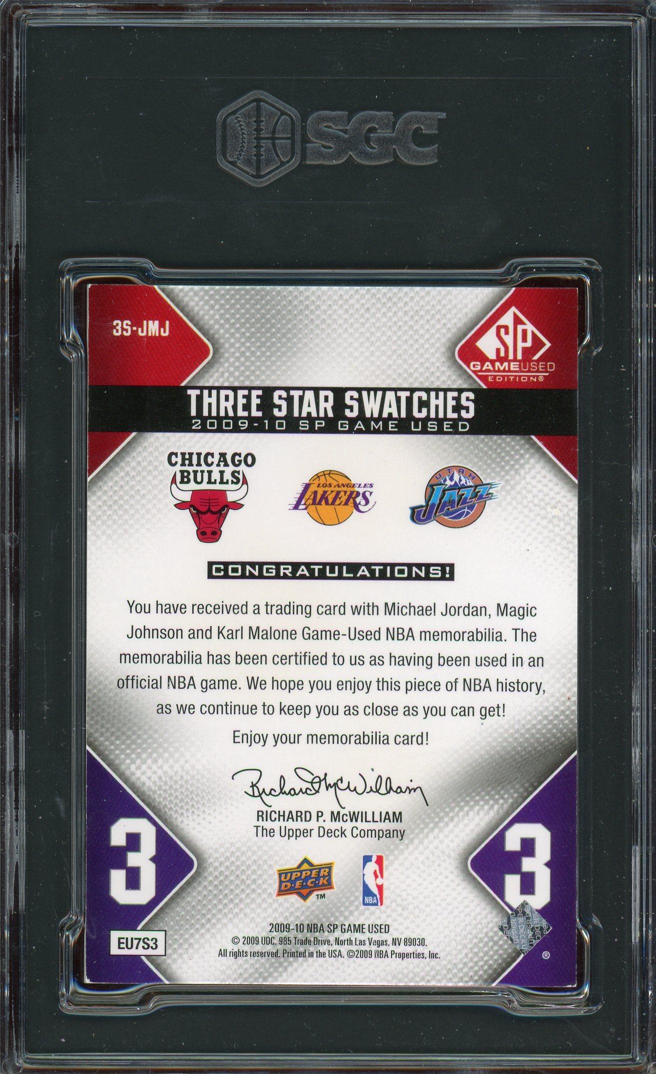 Michael Jordan, Magic Johnson & Karl Malone 2009 UD SP Game Used 3 Star Swatches Card /50 SGC 8