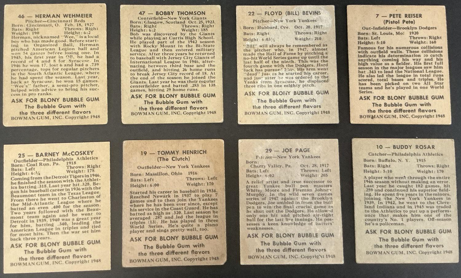 Lot of (8) 1948 Bowman Baseball Cards : Inc. Bobby Thomson Rookie!