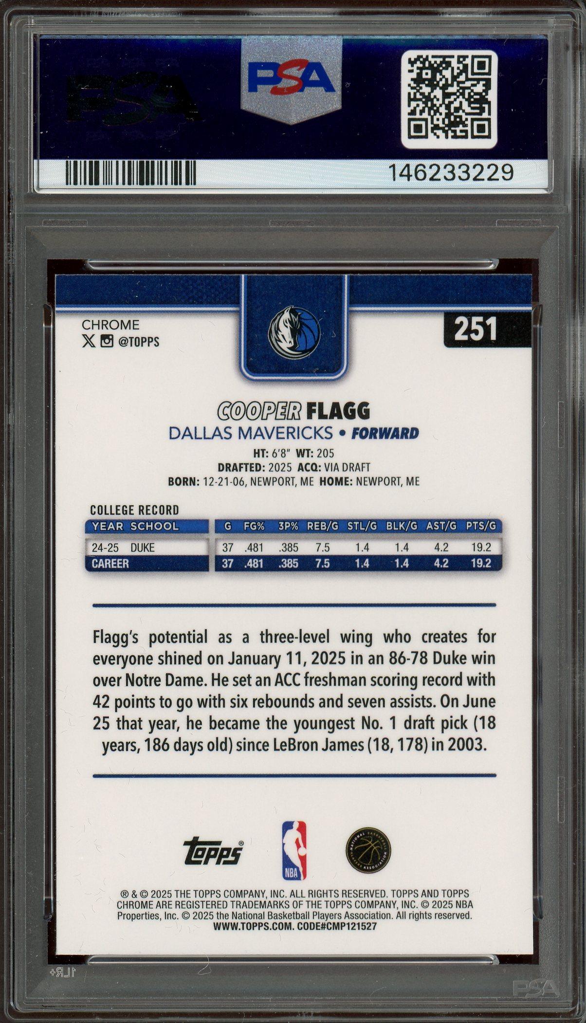 Cooper Flagg 2025 Topps Chrome Xfractor Rookie Card #251 PSA 9