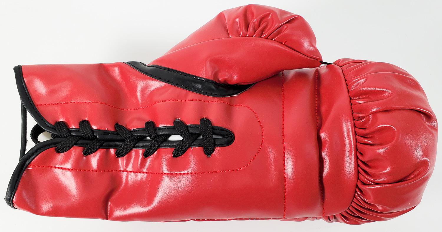 This autographed boxing glove has been personally hand-signed by Mike Tyson. This autograph is certified by James Spence Authentication's (JSA) Witnessed Protection Program. That means that a JSA representative was present when this item was signed. It comes with the numbered authentication hologram with a QR code that verifies the authentication on the JSA website.
