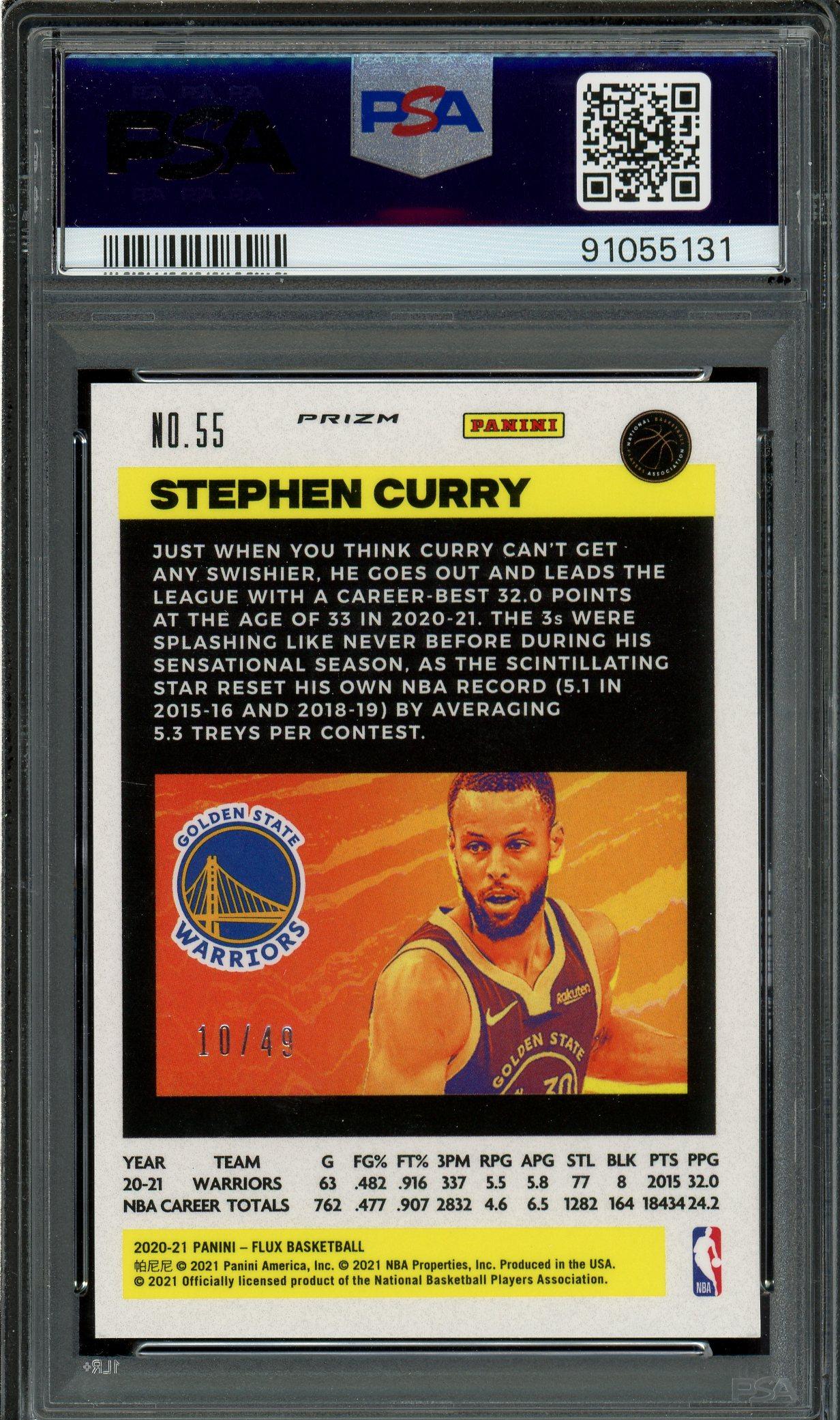 Stephen Curry 2020 Panini Flux Red Mojo Card /49 PSA 9: POP 7, 3 Higher!