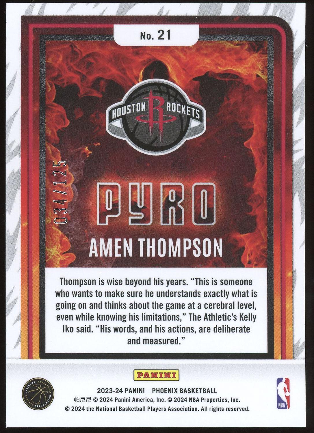 Amen Thompson 2023 Panini Phoenix Pyro Rookie Card /125. Please see pictures for details on the condition of this card.