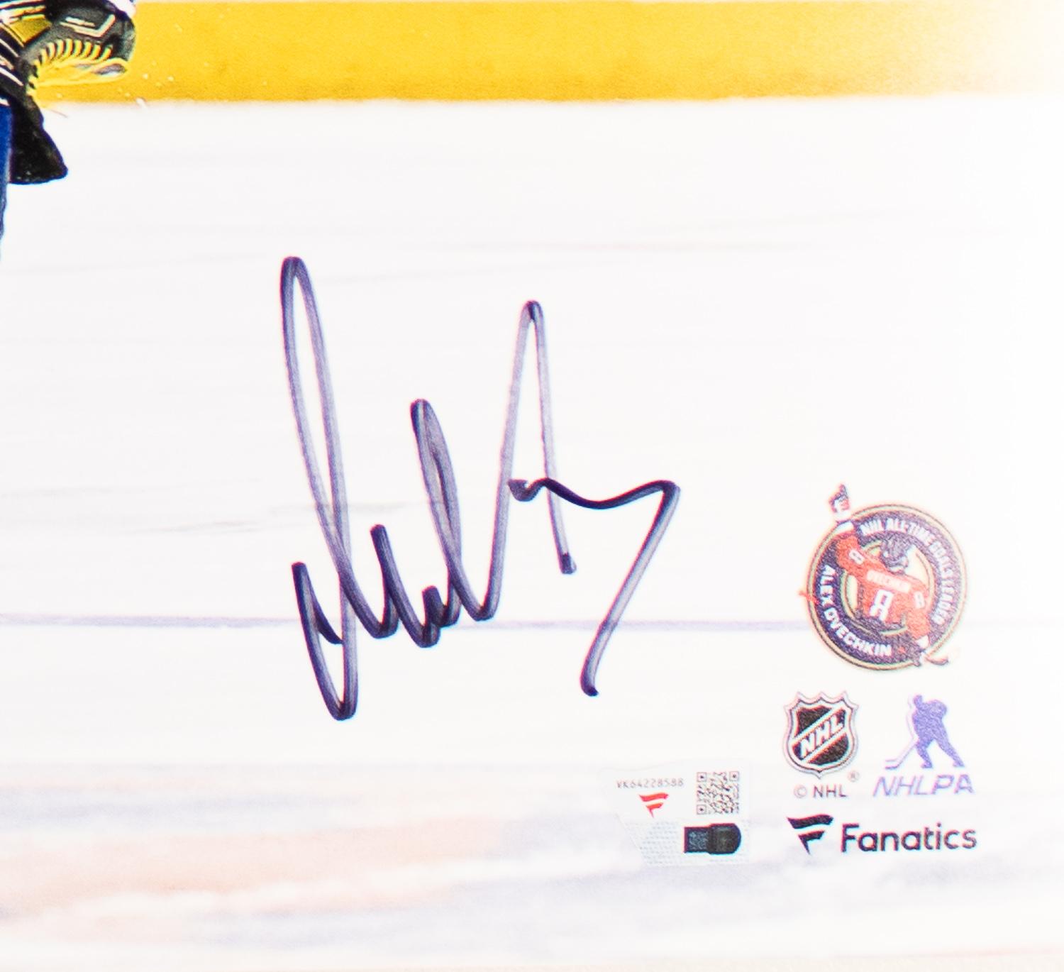 This autographed 16x20 photo has been personally hand-signed by Alexander Ovechkin of the Washington Capitals. This autograph is certified by Fanatics. It comes with the numbered hologram which can be verified on Fanatics.com.