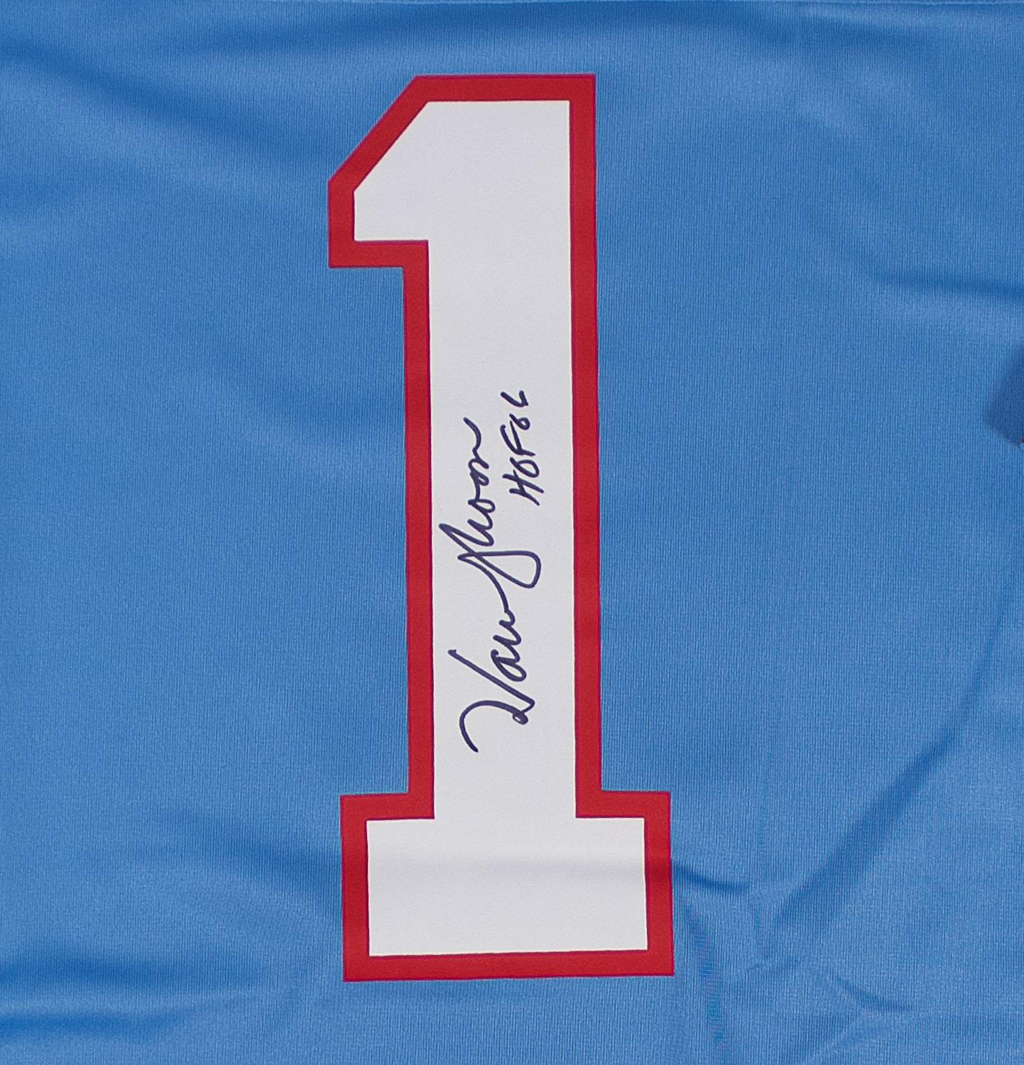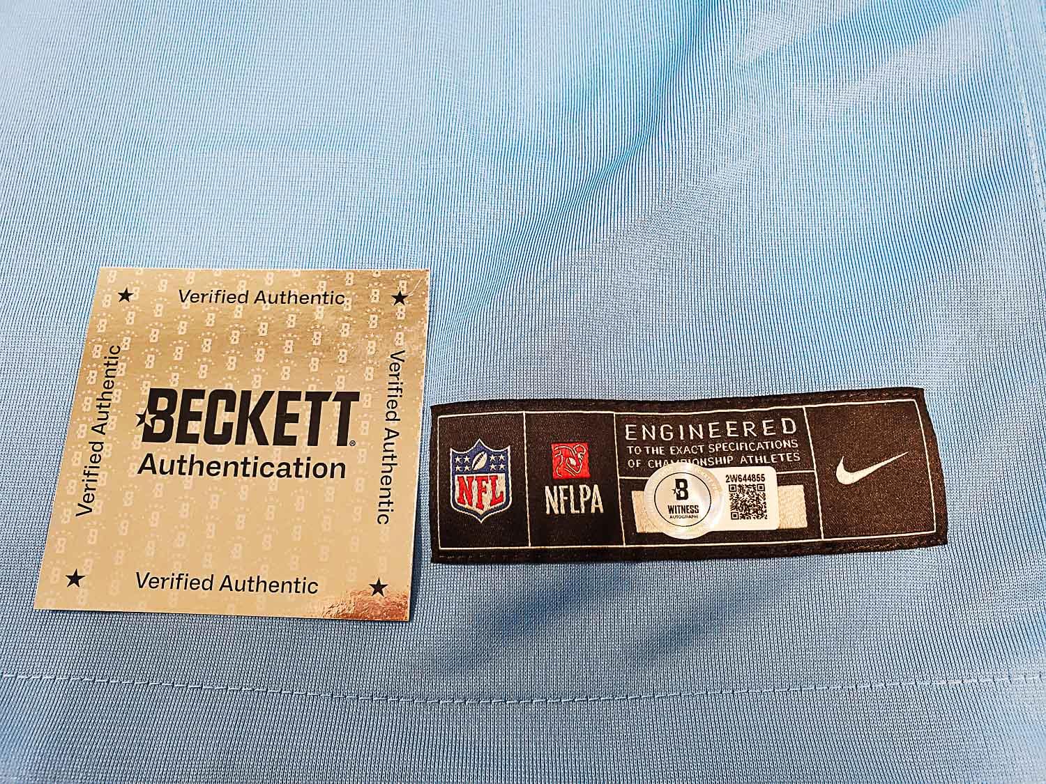 This autographed Nike jersey has been personally hand-signed by Warren Moon "HOF 06" of the Houston Oilers. This autograph is certified by Beckett Authentication Services (BAS) Witness Certification. That means that a Beckett representative was present when this item was signed. It comes with the numbered authentication hologram with a QR code that verifies the authentication on the Beckett website.