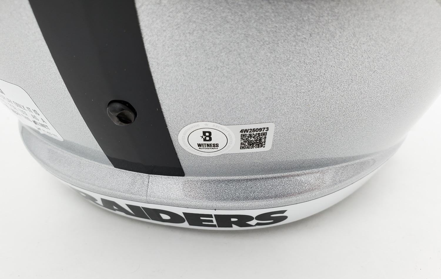 This autographed full size Riddell replica Speed helmet has been personally hand-signed by Bo Jackson of the Oakland Raiders. This autograph is certified by Beckett Authentication Services (BAS) Witness Certification. That means that a Beckett representative was present when this item was signed. It comes with the numbered authentication hologram with a QR code that verifies the authentication on the Beckett website. Stock images are used for this listing. The item you will receive will be of equal quality to the one pictured. The signature location may vary slightly.