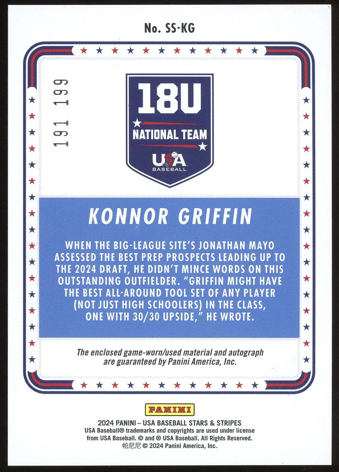Konnor Griffin 2024 Panini USA Stars & Stripes Patch Auto Card /199