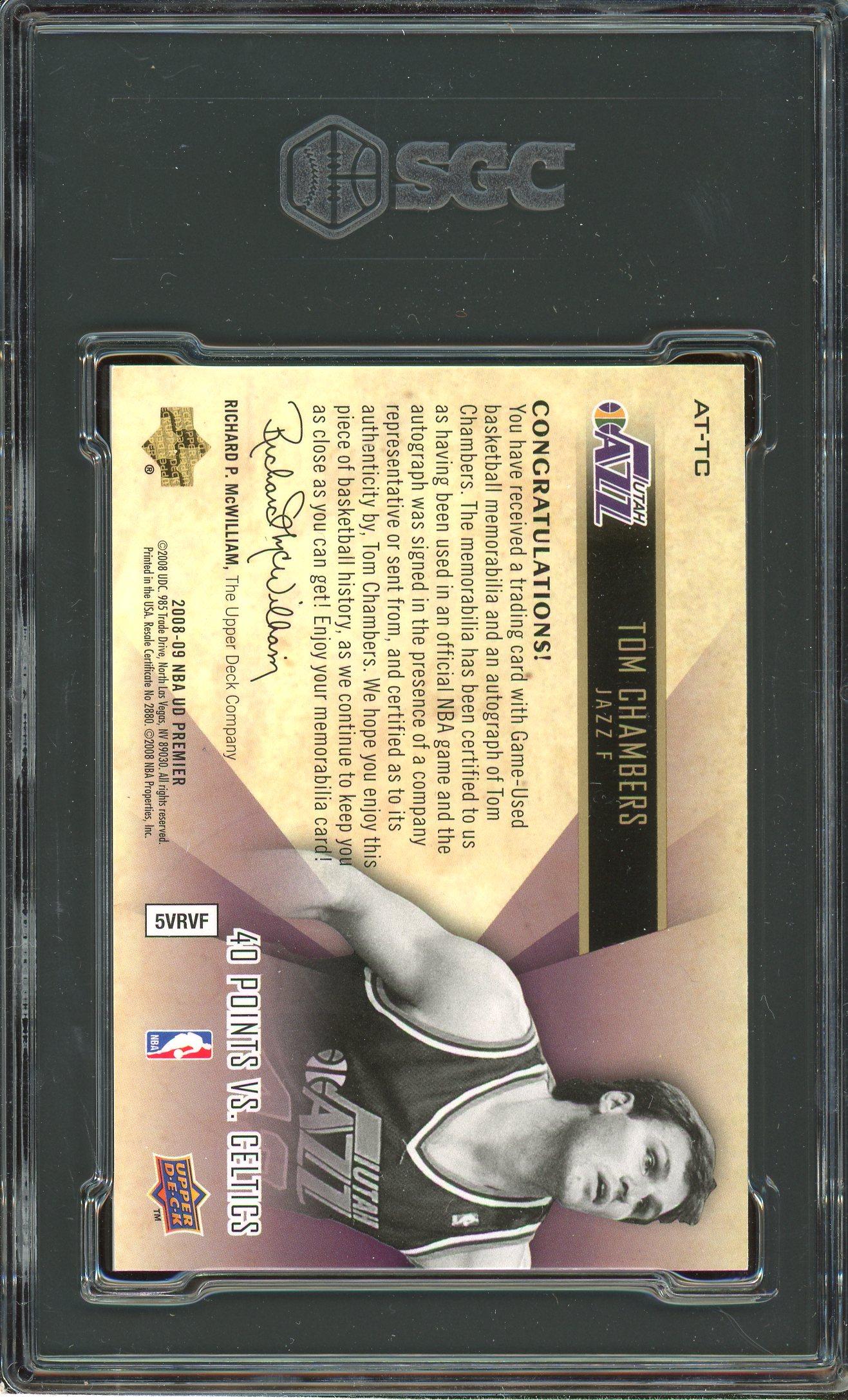 Tom Chambers 2008 UD Premier Attractions Patch Auto Card /50 SGC 8.5 Auto 10